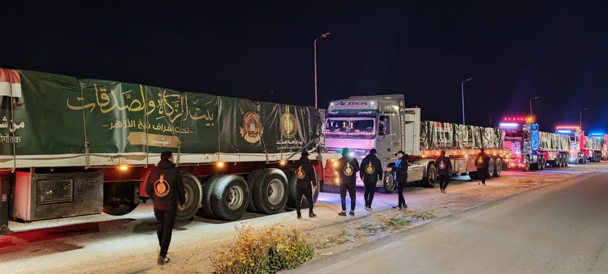 الأزهر يتحرك لإغاثة سكان غزة بعد وقف إطلاق النار.. دخول أول شحنة مساعدات من بيت الزكاة لسكان القطاع.. و200 شاحنة عملاقة محمَّلة بآلاف الأطنان من المساعدات الإغاثية العاجلة بعد توجيهات "الطيب"