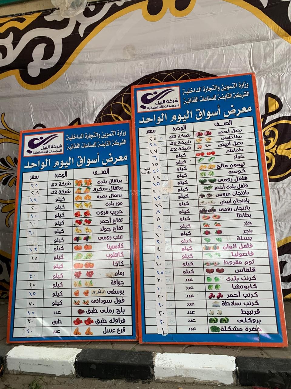 وفيما يلى أسعار السلع الغذائية بسوق اليوم الواحد بالزيتون: