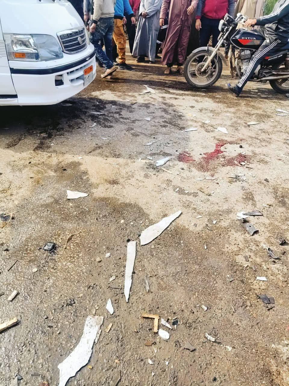 جثة غارقة في الدماء، وعلى بعد سنتيمترات قليلة قرابة 29 شخصًا يتألمون جراء إصاباتهم بجروح وكسور ومتنوعة، فيما تعالت الصرخات، ومطالب بالمساعدات، توقفت حركة المرور على الطريق، وهرع المارة لمساعدة المصابين تلك اللقطات الأولى من حادث تصادم سيارتين ميكروباص على طريق «طنطا- قطور» وسط سماع دوي صوت سيارات الشرطة والإسعاف.