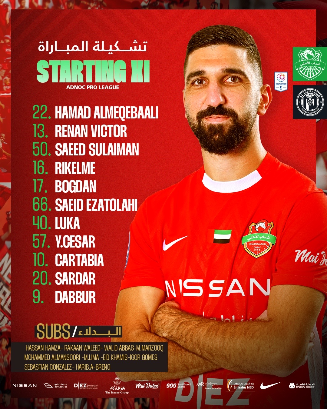 تشكيل الجزيرة الإماراتي أمام شباب الأهلي