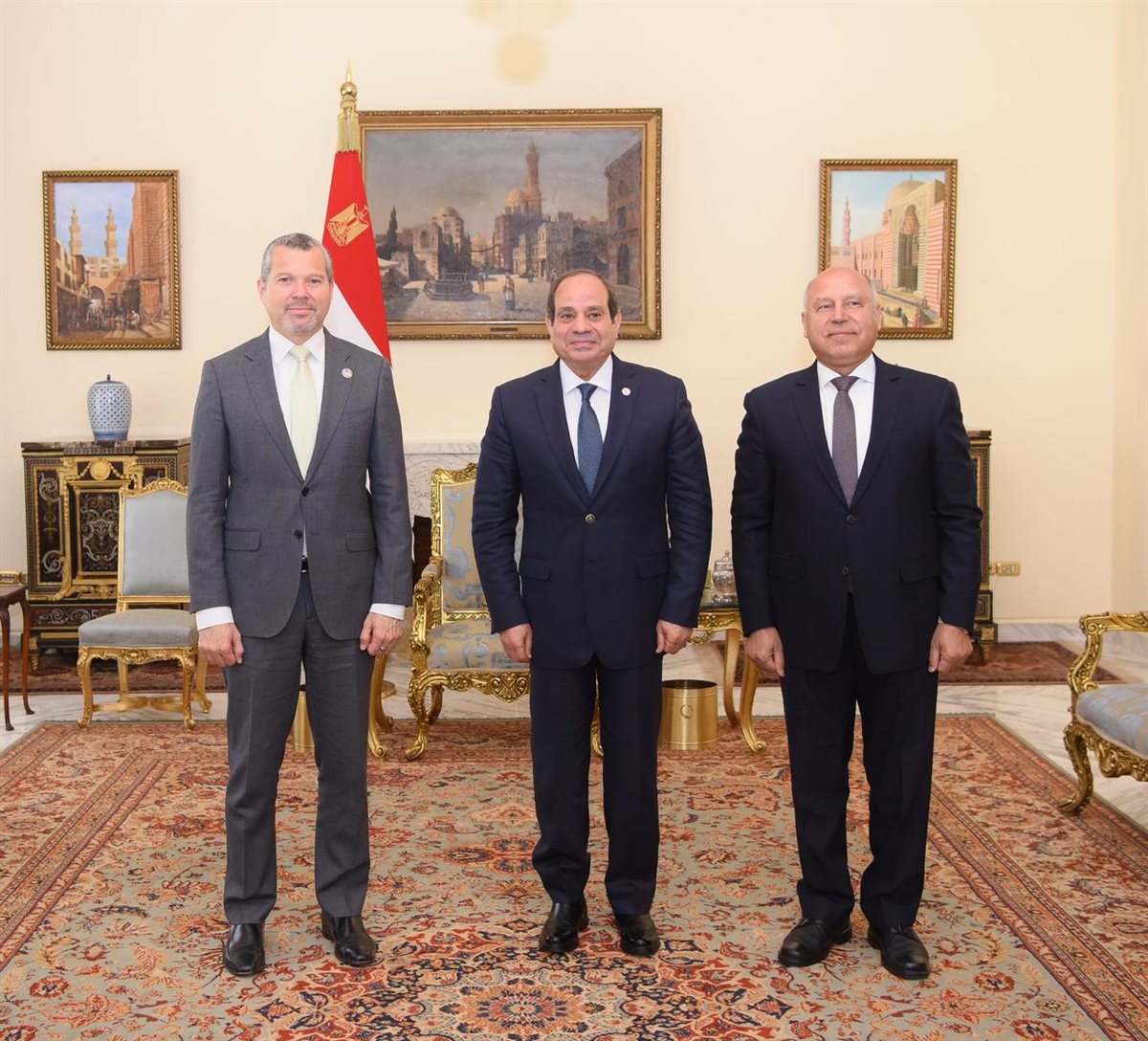 استقبل الرئيس عبد الفتاح السيسي، اليوم، "أرسينيو دومينجيز"، سكرتير عام المنظمة البحرية الدولية، وذلك بحضور الفريق كامل الوزير، نائب رئيس مجلس الوزراء للتنمية الصناعية ووزير الصناعة والنقل.