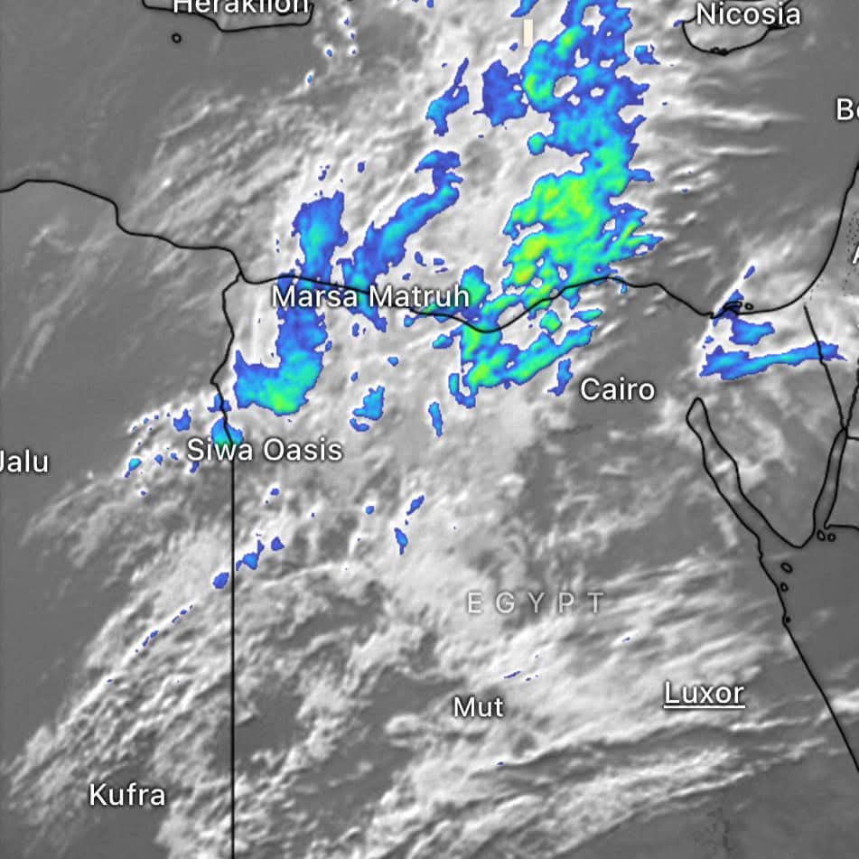 حالة الطقس، قالت هيئة الأرصاد إن صور الأقمار الصناعية تشير إلى استمرار تكاثر السحب المنخفضة والمتوسطة الممطرة على مناطق متفرقة من غرب البلاد ( مطروح - الإسكندرية - مناطق من الصحراء الغربية) يصاحبها سقوط أمطار متفاوتة الشدة.