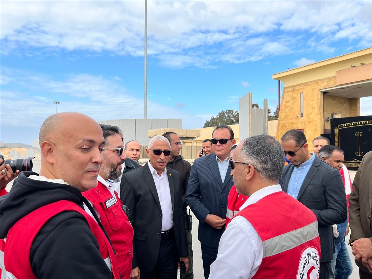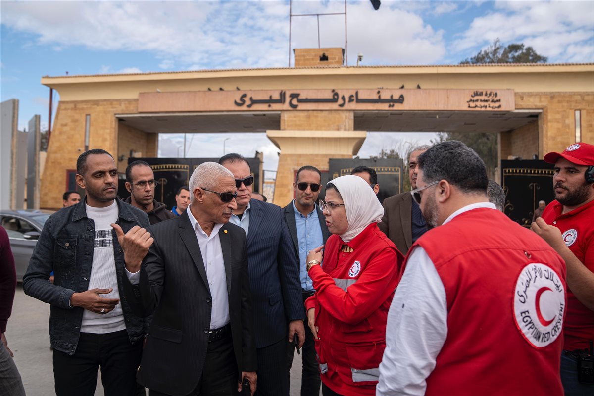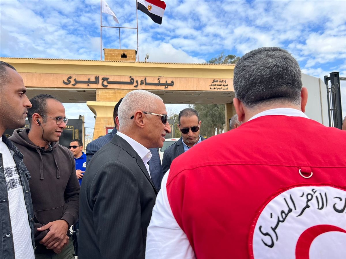 محافظ شمال سيناء يشهد اصطفاف شاحنات التحالف الوطني أمام معبر رفح البري