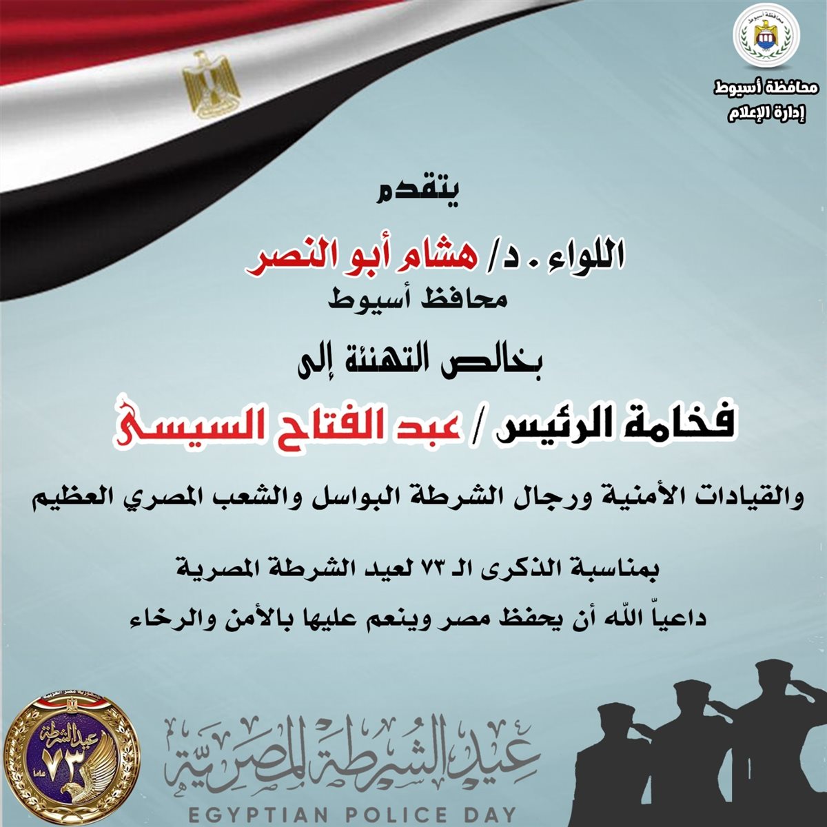 محافظ أسيوط يهنئ رئيس الجمهورية بعيد الشرطة الـ73