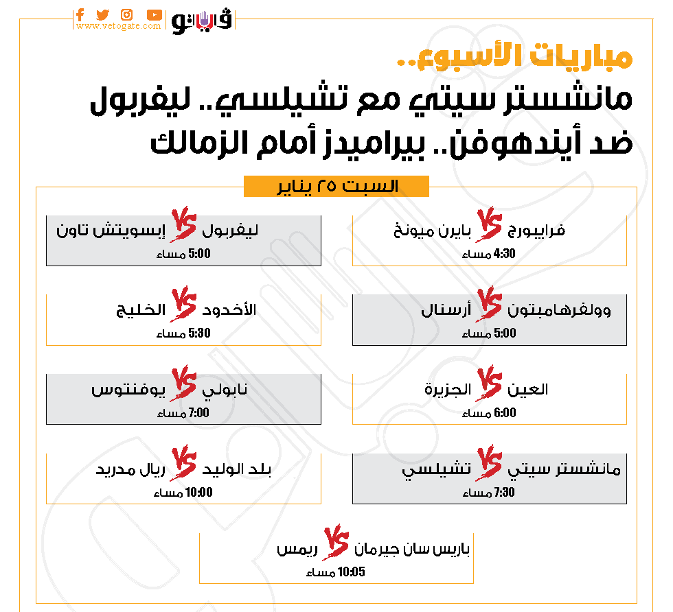 مباريات الأسبوع، مانشستر سيتي مع تشيلسي.. ليفربول ضد أيندهوفن.. بيراميدز أمام الزمالك (إنفوجراف)