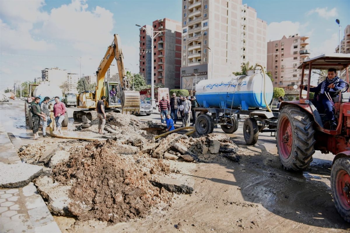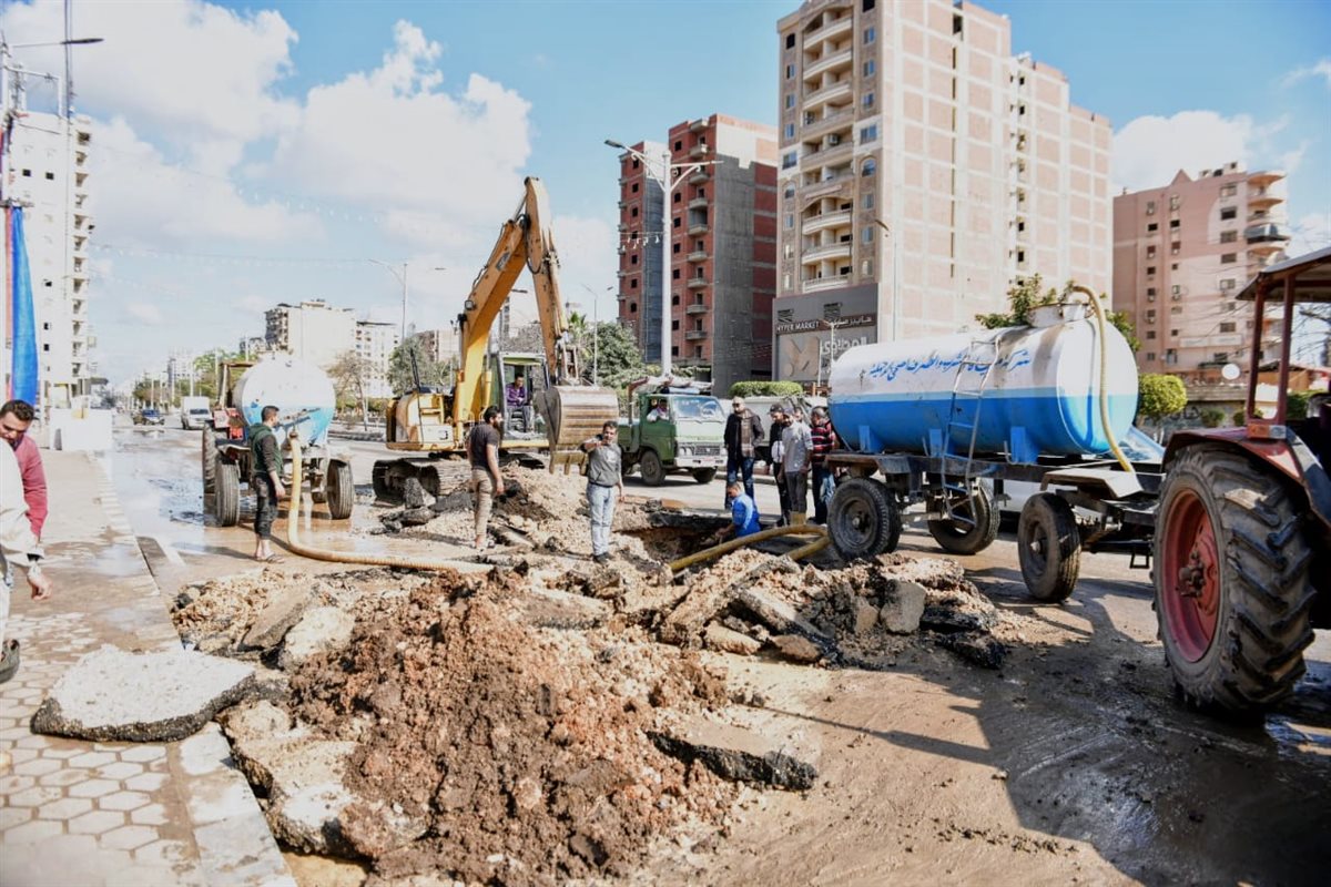 محافظ الدقهلية يوجه بإصلاح كسر خط مياه في المنصورة (صور)