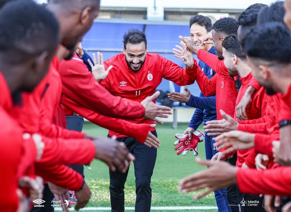 شهد مران كهربا الأول مع الاتحاد استقبال حافل للنجم المصري من زملاءه الجدد في الفريق الليبي وجاريدو مدرب الفريق.