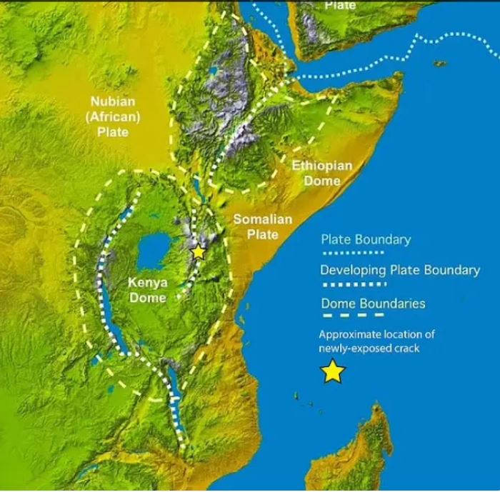 أوضحت المستشارة السابقة لوكالة ناسا وقوة الفضاء ألكسندرا دوتن على قناة "Astro Alexandra" على إنستجرام "تقع شرق إفريقيا على صفيحة الصومال.
