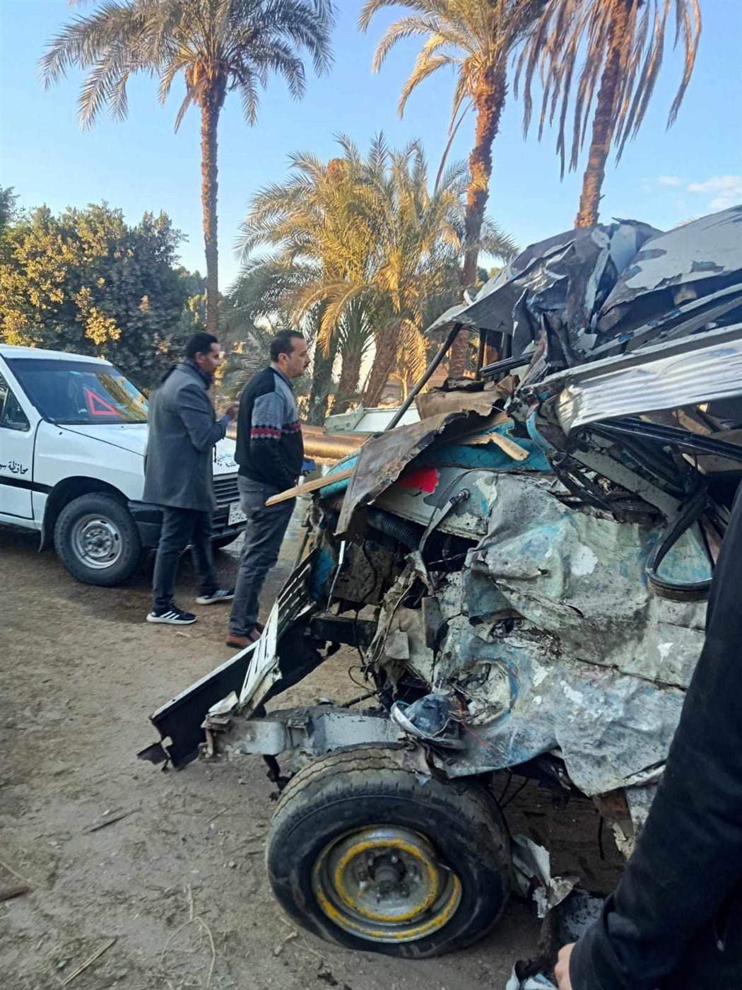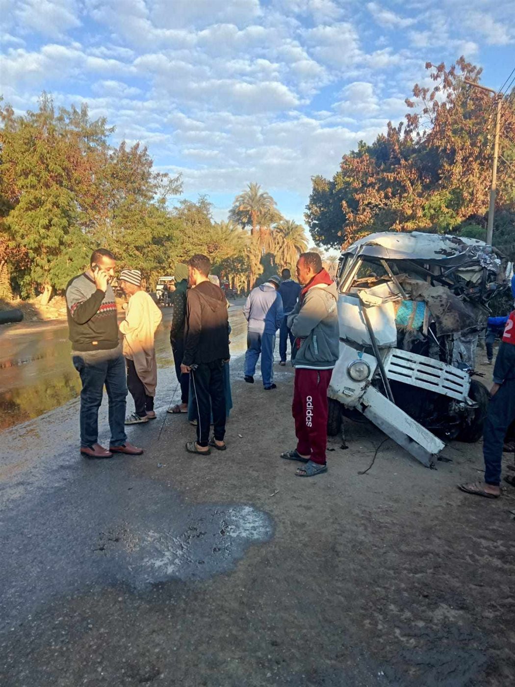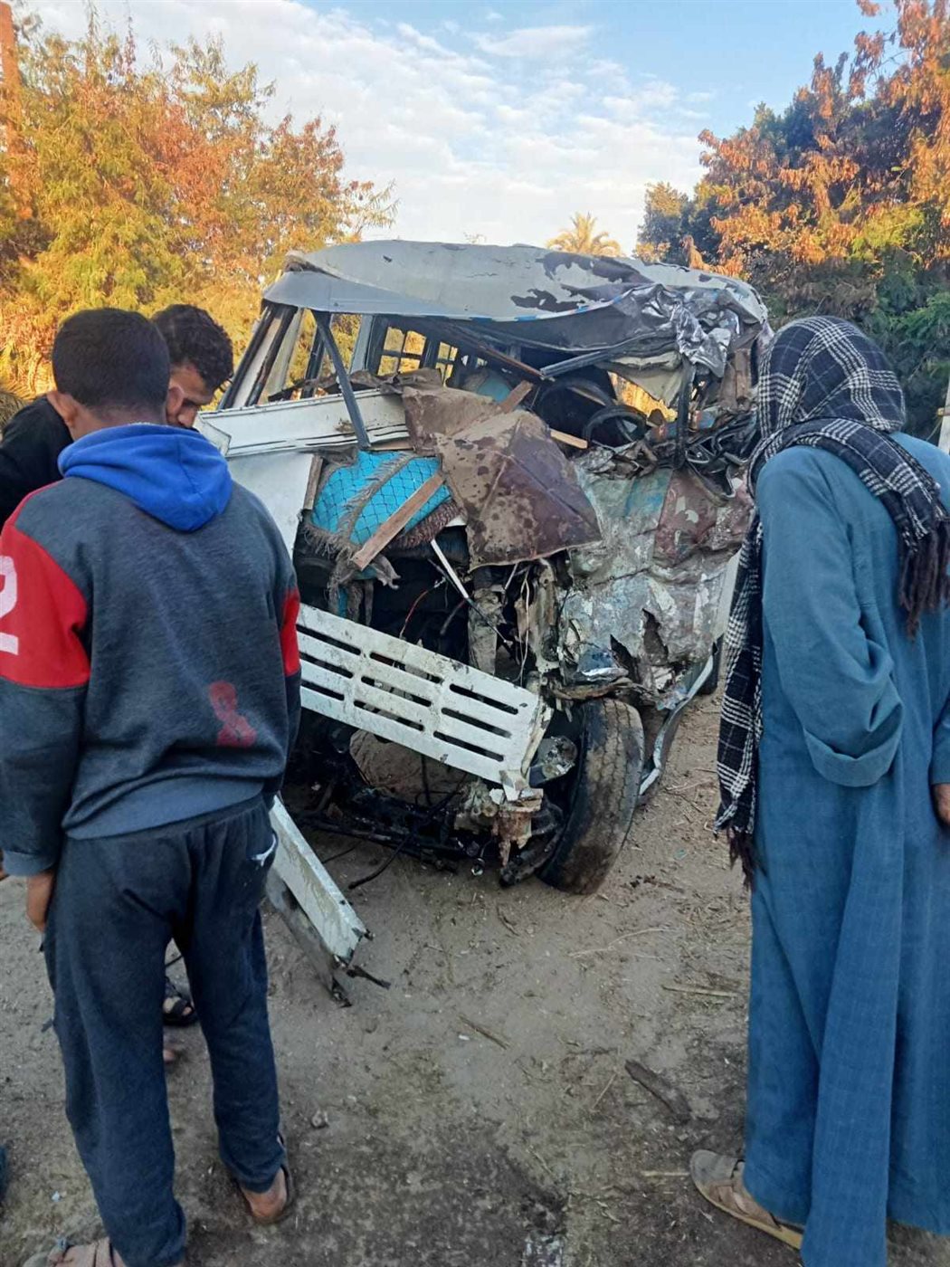 بالأسماء، مصرع ربة منزل وإصابة 9 أشخاص في تصادم سيارتين ميكروباص بسوهاج (صور)