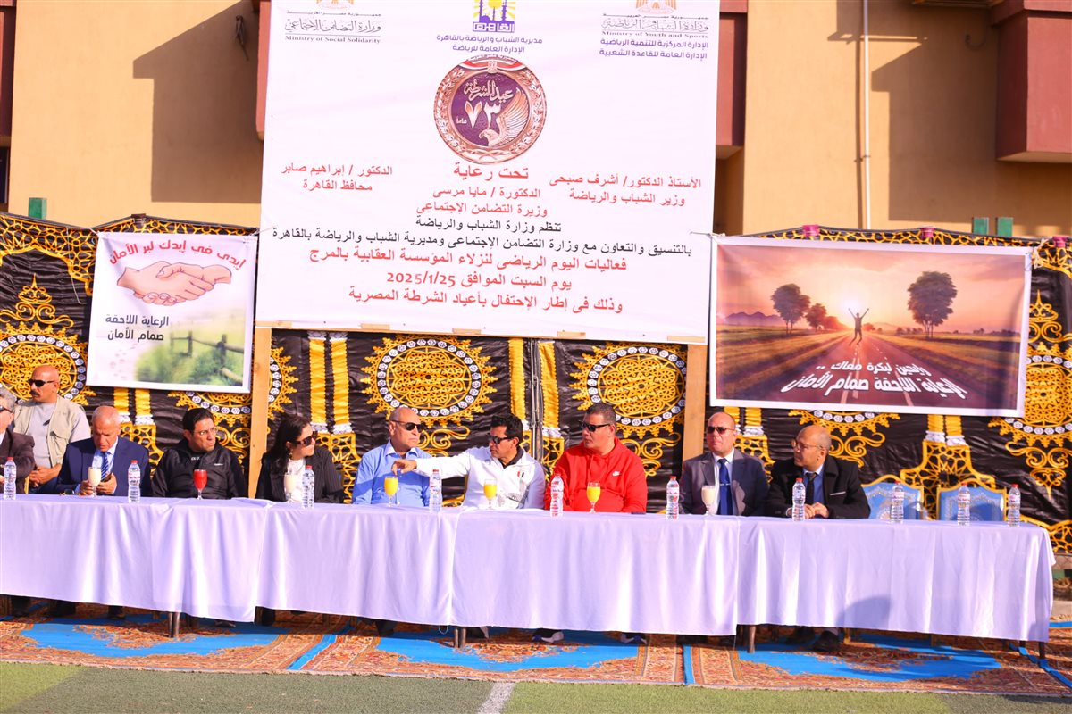 جاء ذلك فى إطار الاحتفال بأعياد الشرطة المصرية والذى شهد فعالياته الدكتور أشرف صبحي وزير الشباب والرياضة بحضور الدكتور إبراهيم صابر، محافظ القاهرة، أيمن عبد الموجود الوكيل الدائم لوزارة التضامن الاجتماعي، وائل عبد العزيز رئيس الإدارة المركزية للرعاية الاجتماعية، حسين إسماعيل مدير عام الإدارة العامة للدفاع الاجتماعي بوزارة التضامن الاجتماعي، ودكتور عمرو الحداد وكيل وزارة الشباب والرياضة ورئيس الإدارة المركزية للتنمية الرياضية، وعدد واسع من قيادات العمل بوزارتى التضامن الاجتماعى والشباب والرياضة.