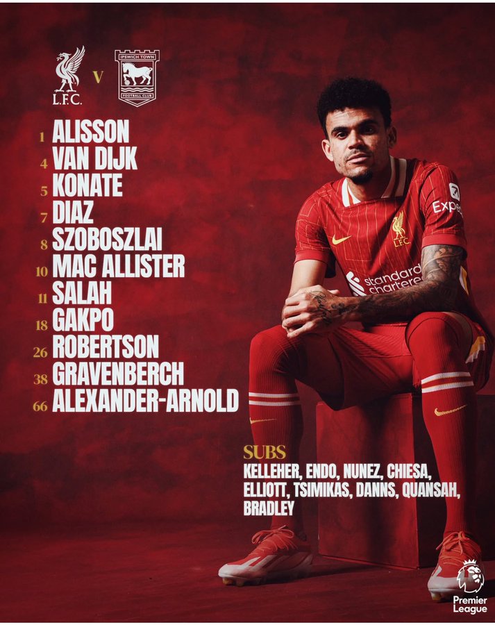 فيما ضم تشكيل ليفربول أمام إيبسويتش تاون في الدوري الإنجليزي كلا من: