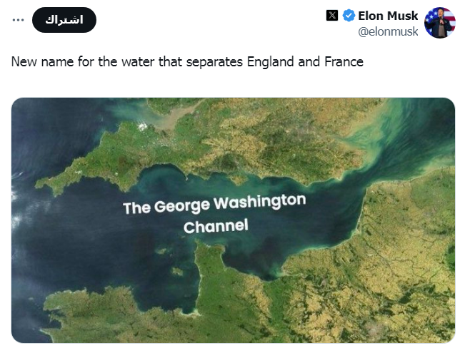 إيلون ماسك يغير اسم بحر المانش لقناة جورج واشنطن، والنشطاء: بداية احتلال أمريكا لأوروبا