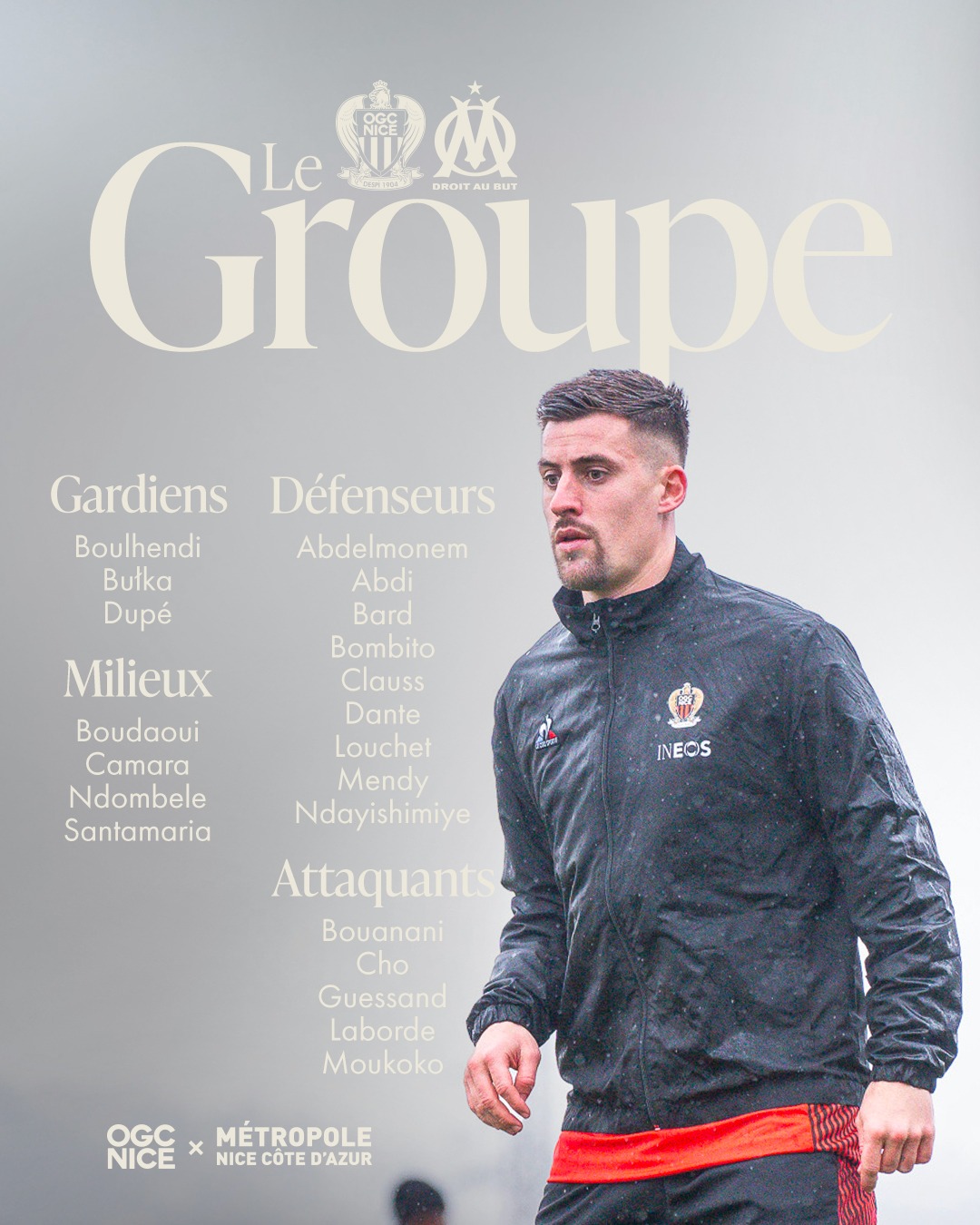 وتصدر محمد عبد المنعم لاعب المنتخب الوطني قائمة فريق نيس لمواجهة مارسيليا الليلة التي ضمت كلا من: