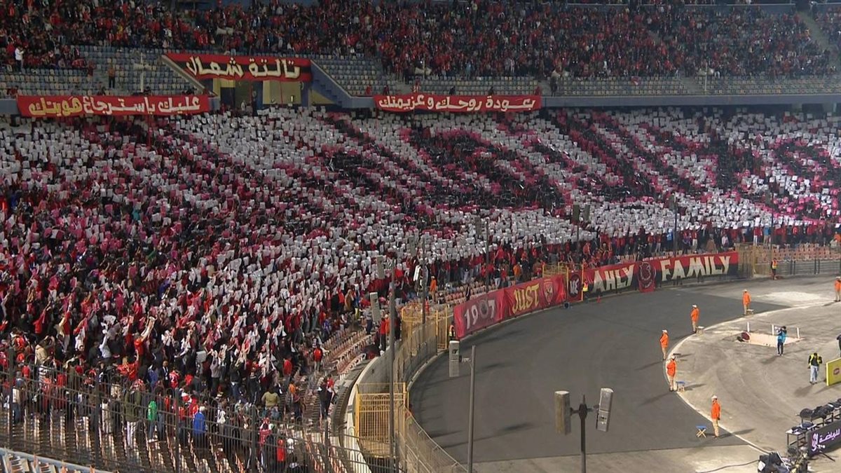 ورفعت جماهير الأهلي تيفو يحمل عبارة “بعودة روحك وعزيمتك.. عليك باسترجاع هويتك، روح الأهلي الأسطورة".