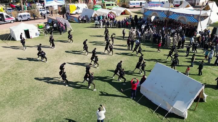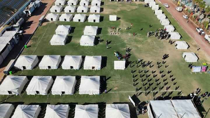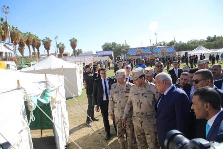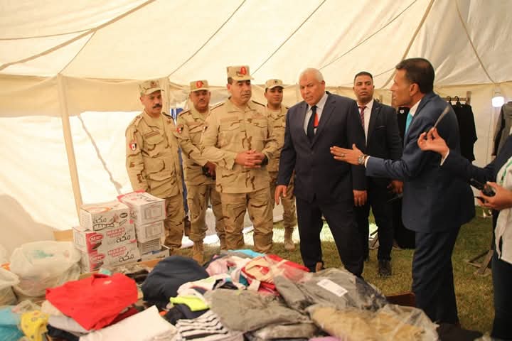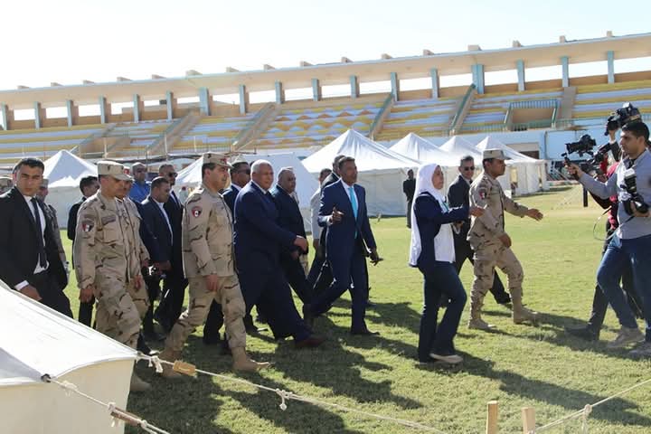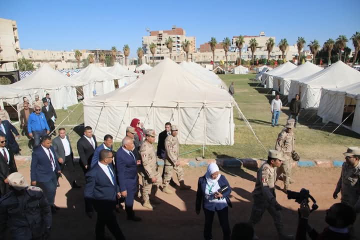 كما استعرضوا تجهيزات المستشفى الميداني الملحقة بالمعسكر والتي تم تجهيزها بكافة الخدمات والكوادر الطبية اللازمة، مشيدين بجاهزية وإمكانات المعسكر وما تم بذله من جهد في توفير كافة أوجه الرعاية اللازمة، بالتنسيق والتعاون بين مختلف الجهات والجمعيات الأهلية من مخيمات وإعاشة وعيادات متنقلة ومخبز متنقل وخدمات بنكية ومدرسة ومسجد وكنيسة.