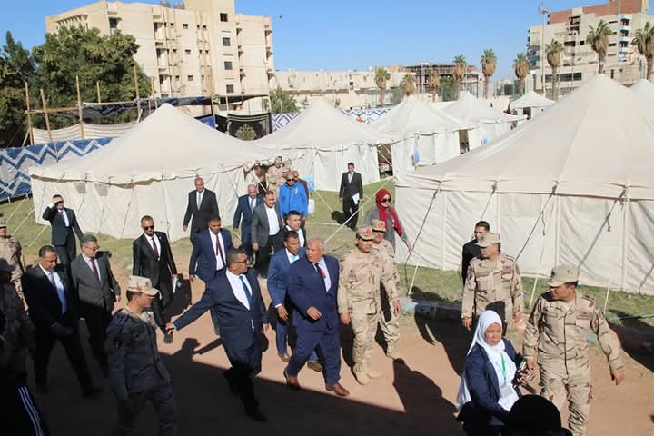 في محاكاة لإيواء 200 شخص، الزملوط وعبدالحميد يتفقدان معسكر طوارئ بالخارجة