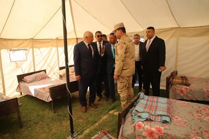 شهد اللواء دكتور محمد الزملوط محافظ الوادي الجديد واللواء أسامة عبدالحميد قائد قوات الدفاع الشعبي والعسكري، يرافقهما العميد هيثم عبده المستشار العسكري بالمحافظة والوفد المرافق، تجربة محاكاة معسكر الإيواء الذي تم تنظيمه بمركز شباب الخارجة، ضمن التدريب العملي المشترك لمجابهة الأزمات والكوارث "صقر ١٤٤ ".