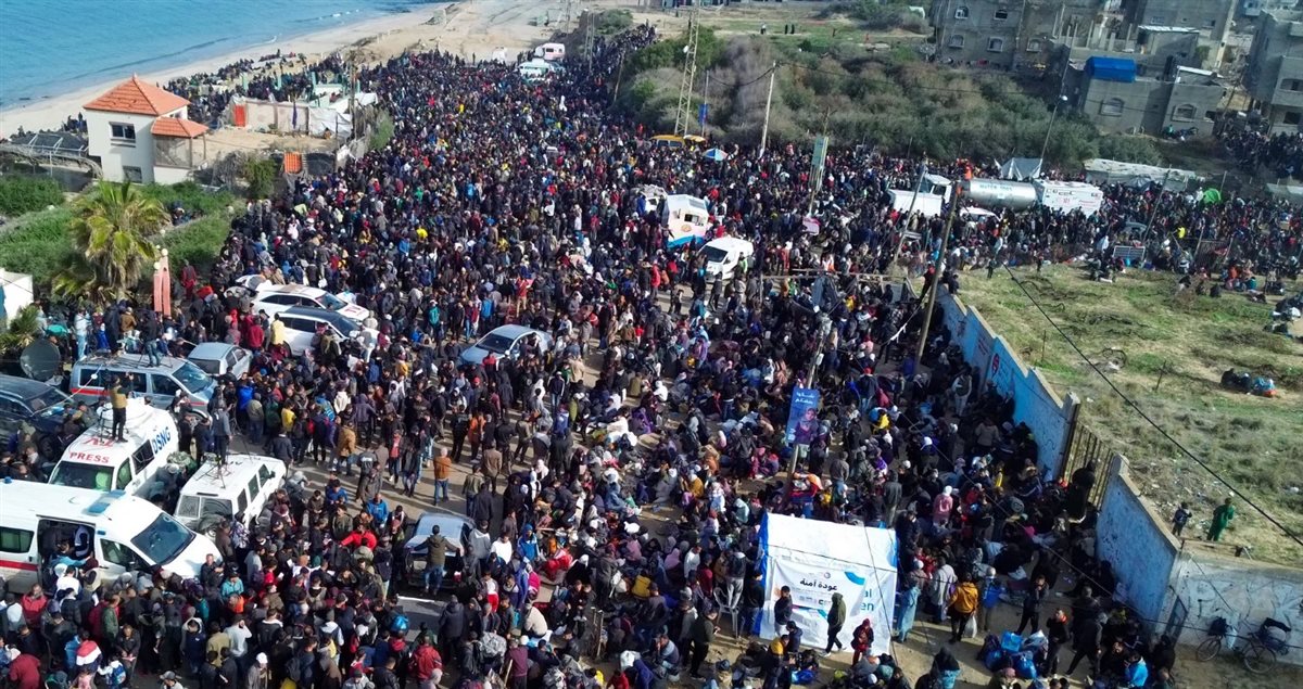 أتى تدفق الحشود هذا بعدما منعت إسرائيل عشرات آلاف الفلسطينيين من العودة من الجنوب إلى الشمال عبر المعبر الذي يقسم القطاع إلى قسمين، متحججة بعدم إطلاق سراح الأسيرة أربيل يهود التي اعتبرت الإفراج عنها أولوية، وعدم تقديم حماس قائمة بالأسرى الأحياء منهم والأموات.