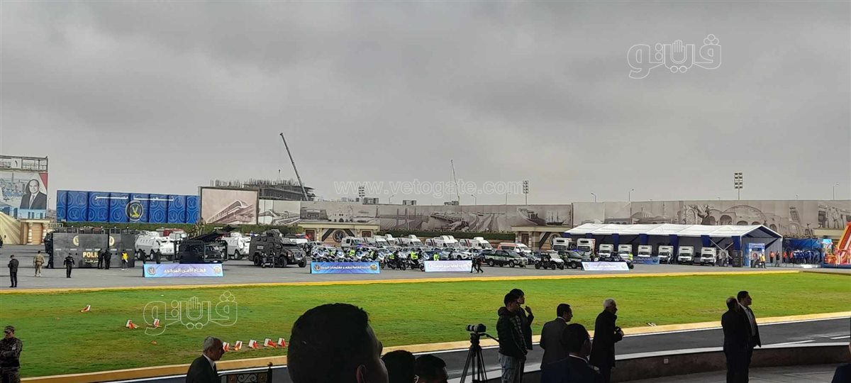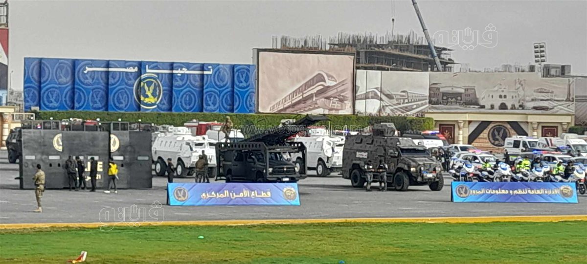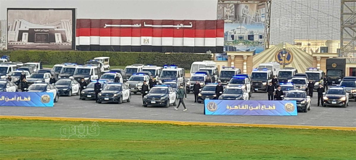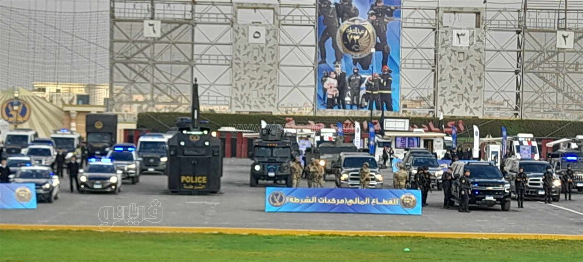 اصطفاف المركبات ومعدات الشرطة في احتفال الداخلية بعيدها 73 بأرض العروض