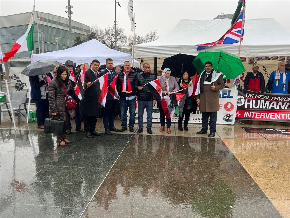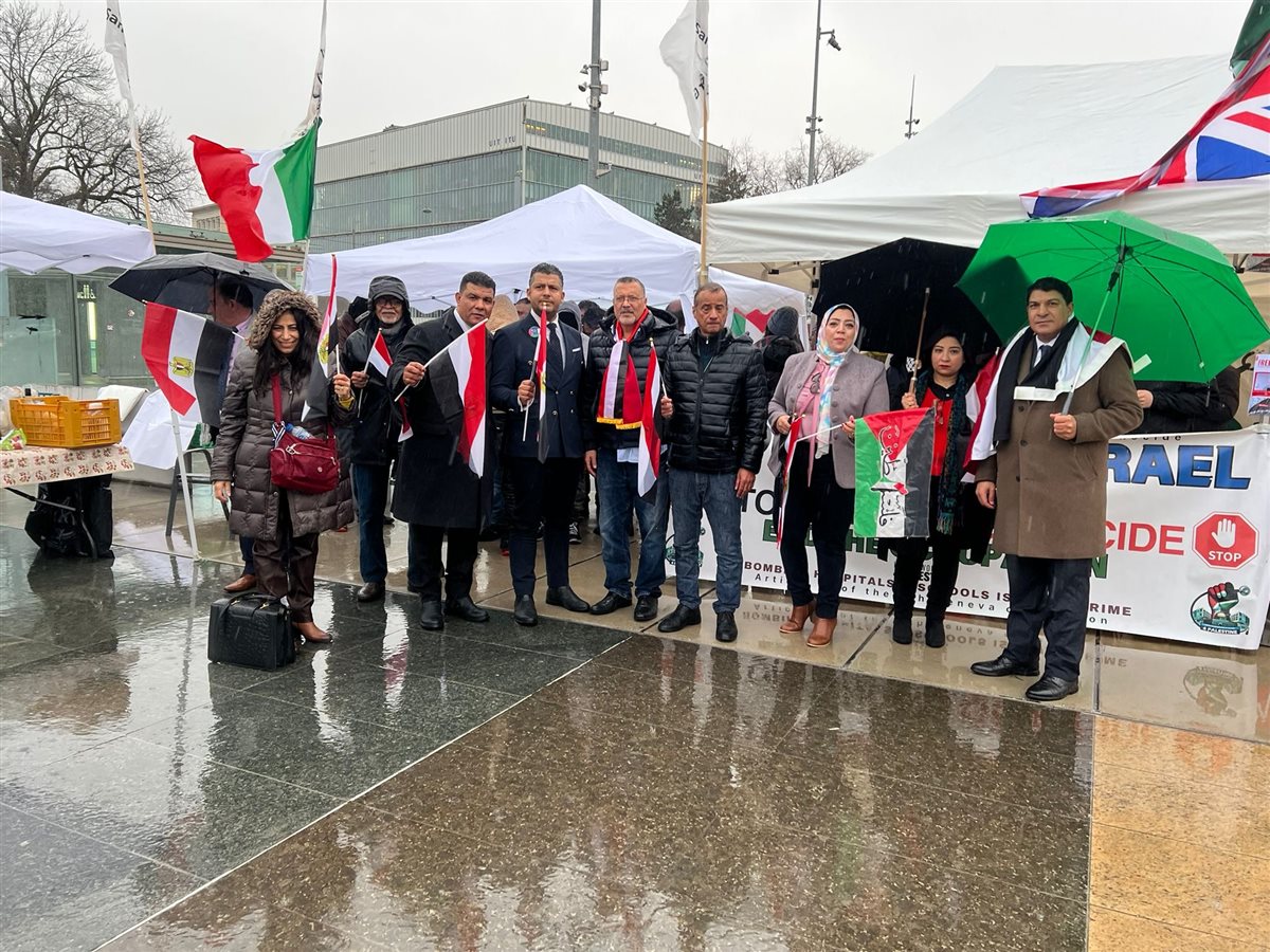 وقفة تضامنية يوم الاثنين أمام الكرسي المكسور بساحة الأمم المتحدة بجنيف، لمطالبة الأمم المتحدة بالتدخل الإنساني لوقف الحروب في المنطقة وتوفير الحماية للشعب الفلسطيني، بالتزامن مع مناقشة مصر لتقريرها أمام آلية الاستعراض الدوري الشامل.