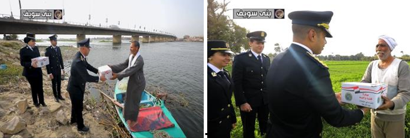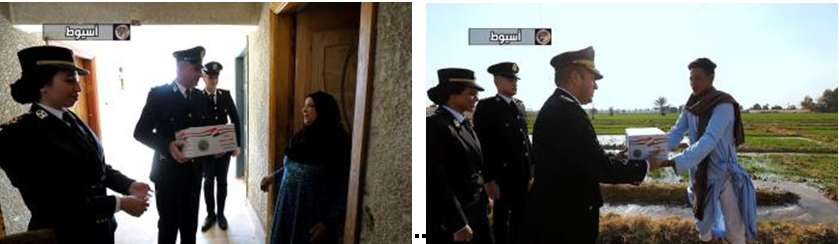 وتم توجيه مأموريات من مختلف مديريات الأمن للقرى والنجوع والمناطق الأكثر إحتياجًا لتوزيع عبوات تحتوى على سلع غذائية متنوعة وذات جودة عالية على المواطنين من قاطنى هذه المناطق.