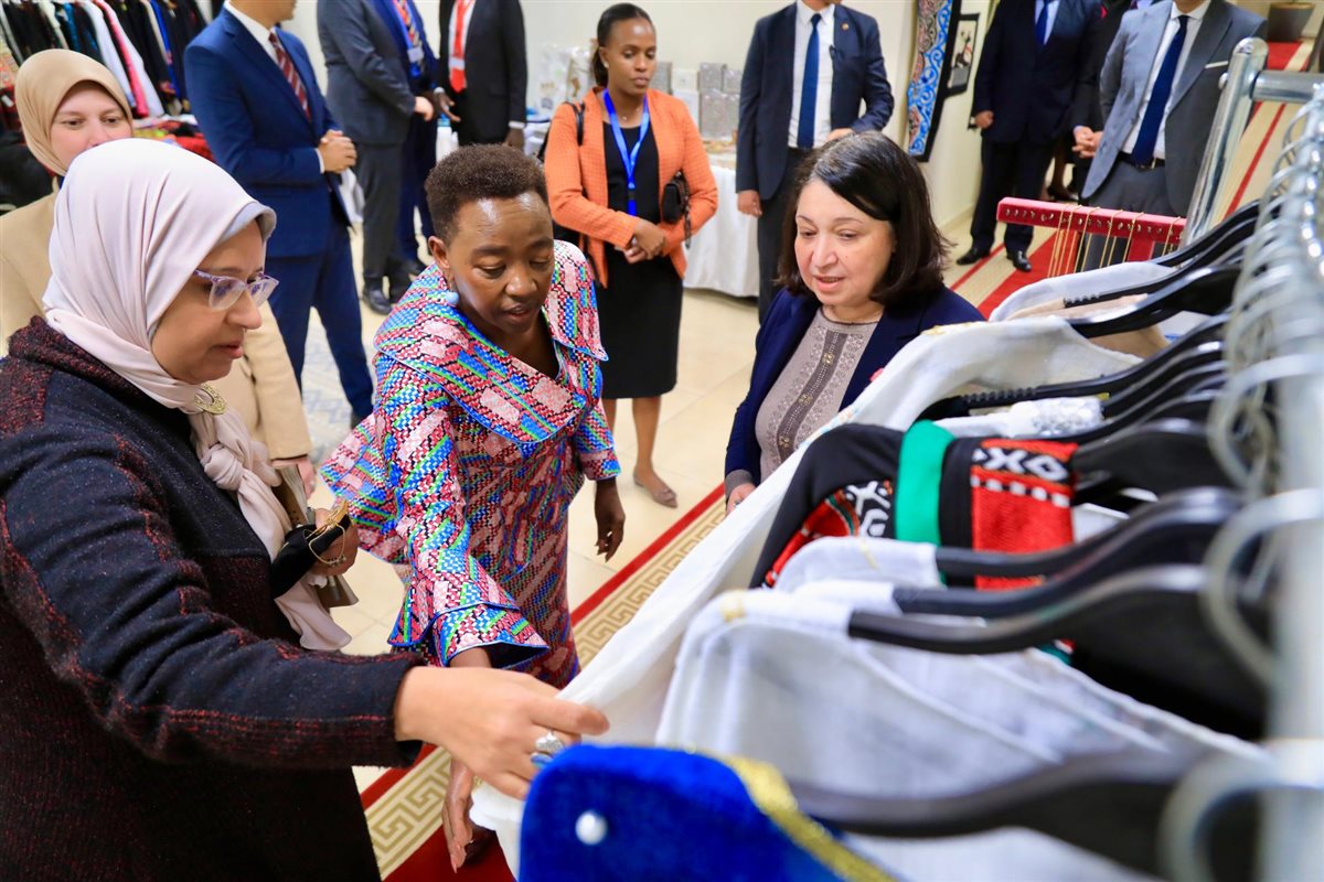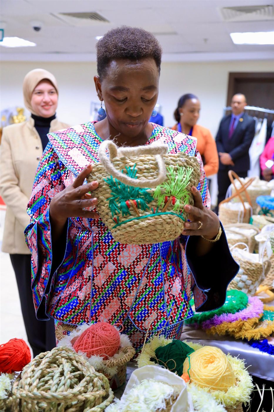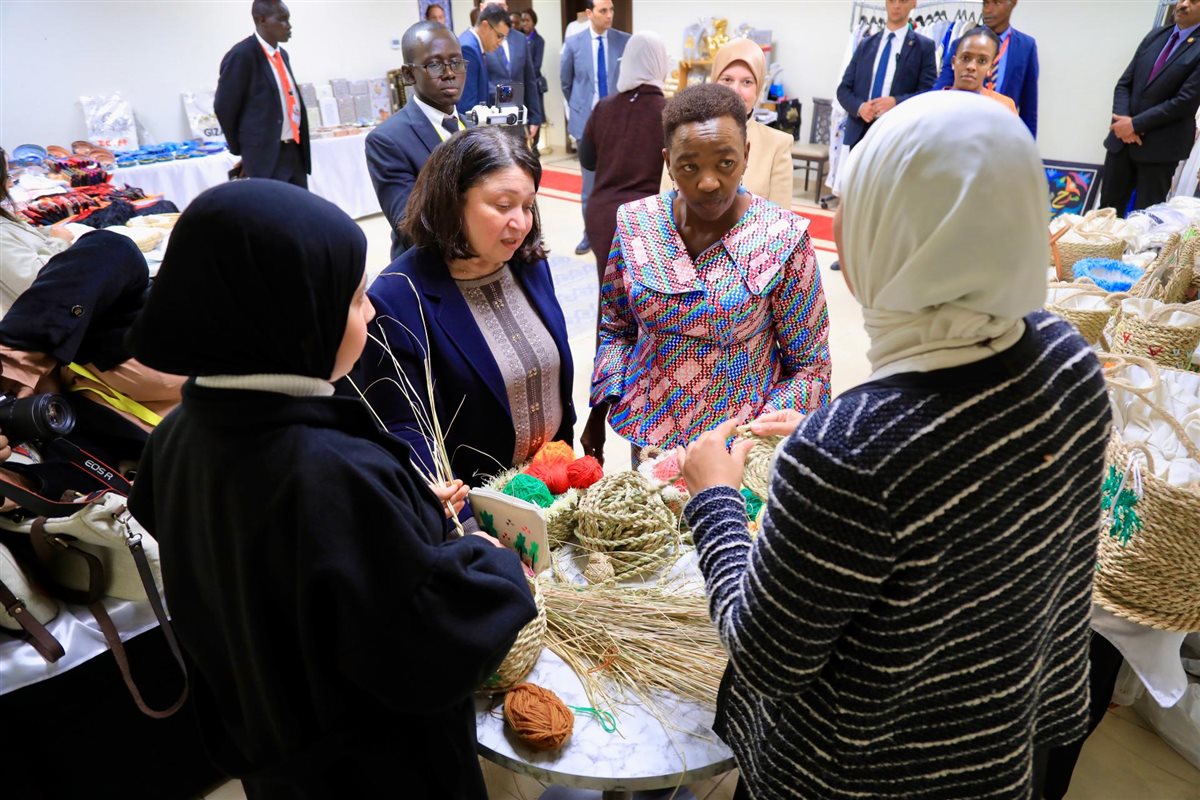 وعقب ذلك تفقدت حرم رئيس جمهورية كينيا معرض الأسر المنتجة بمقر الوزارة، وأطلعت على المنتجات اليدوية التراثية المتنوعة داخله، والتي تنوعت ما بين نحاس وخيامية وخزف والعبايات وأشغال التطريز اليدوي ومنتجات الصدف والخوص وأخميم والسجاد والكليم والمعروضات السيناوية ذات الطابع الأصيل، حيث استمعت لشرح من العارضين عن تلك المنتجات، مشيدة بالمنتجات اليدوية التراثية المصرية وجودتها.