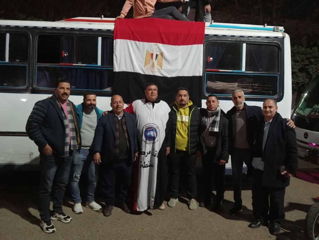 من محافظة المنوفية، انطلقت من مدينة الباجور، فجر اليوم العديد من السيارات والباصات التي تحمل لافتات لا للتهجير متجهة إلى رفح رفضًا للتصريحات التي أعلنها الرئيس الأمريكي دونالد ترامب بمقترح تهجير سكان قطاع غزة لمصر أو الأردن.