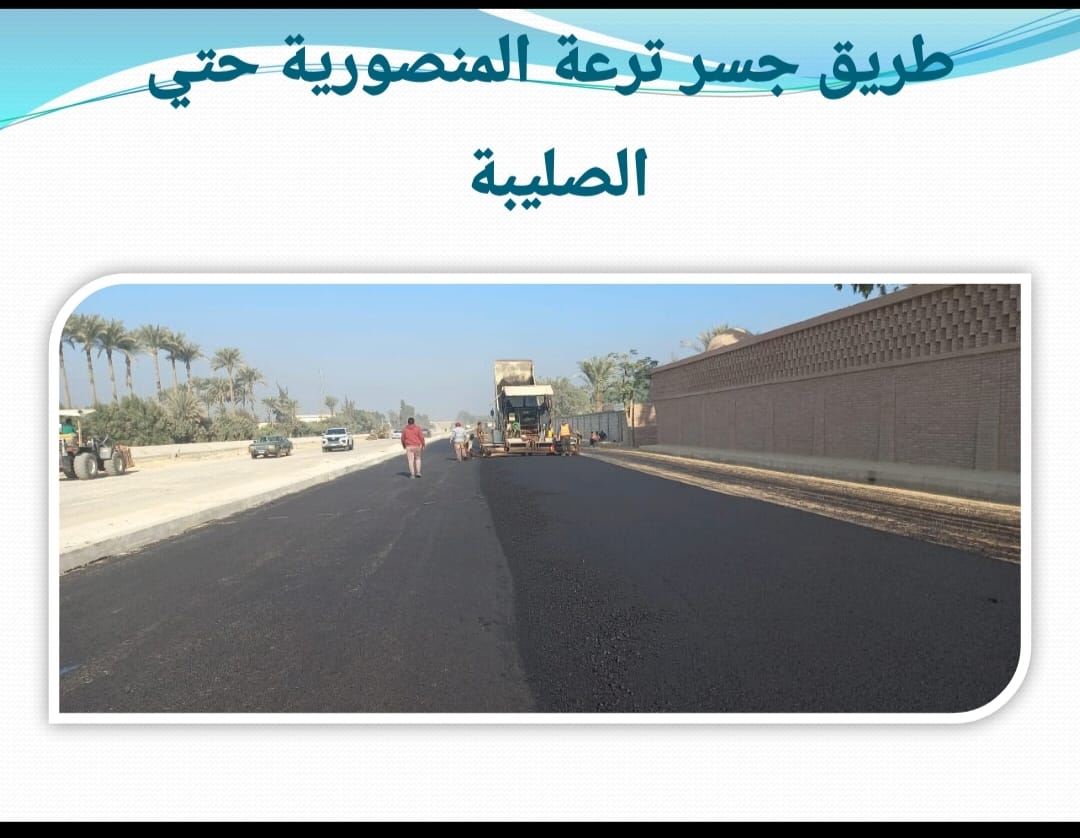كما شملت المشروعات توسعة ورصف طريق جسر ترعة المنصورية بدءا من نهاية الرصف الحالى حتى الصليبة بنطاق مراكز كرداسة ومنشأة القناطر بطول ٢.٧ كم وعرض ٢٨ م وكذا توسعة وتطوير ورصف طريق جسر ترعة المنصورية بدءا من الدائرى الجنوبى وحتى طريق المريوطية بأبو النمرس بطول ٢كم وعرض ٣٣م.