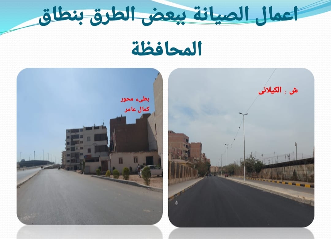 وتابع المحافظ مجهودات المديرية بشأن أعمال الرصف والصيانة التى تم الانتهاء منها مؤخرا والمشروعات الجارية تنفيذها والتي تأتي بأطوال ٣٣.٢ كم وبتكلفة ٤٧٥.٣ مليون جنيه، وذلك في إطار خطة المحافظة لتسهيل حركة سير المواطنين وتيسير الحركة المرورية.