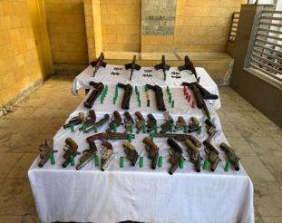 كما تم ضبط 58 قطعة سلاح ناري بدون ترخيص.. عبارة عن (9 بنادق آلية - 12 بندقية خرطوش - 45 فرد محلى - عدد من الطلقات مختلفة الأعيرة)، بحوزة (58 متهم "لـ 21 منهم معلومات جنائية").