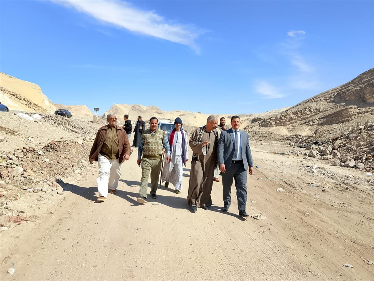 متابعة أعمال الحفر والتكسير والتجهيز لإنشاء طريق دير القصير شرق النيل
