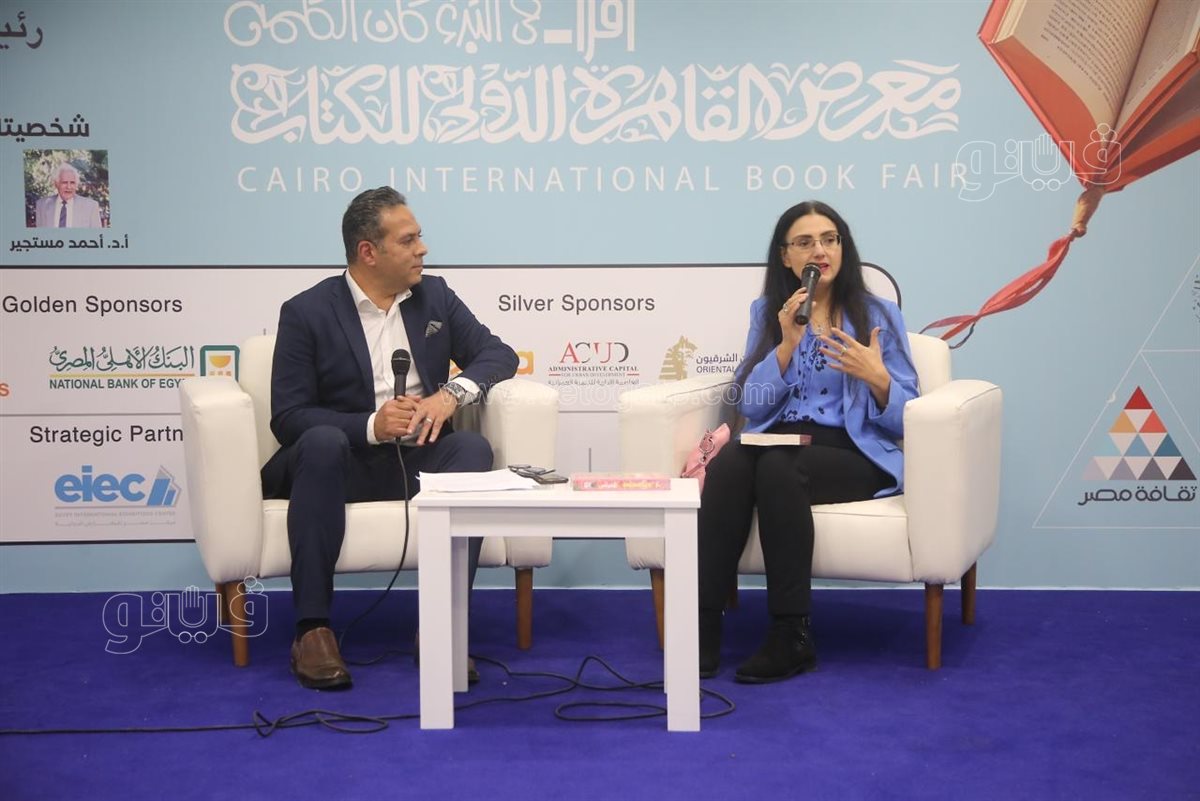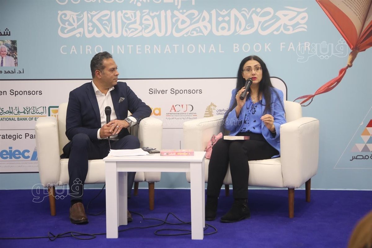 شهدت القاعة الدولية في معرض القاهرة الدولي للكتاب في دورته الـ56 اليوم الإثنين، ندوة ضمن محور "كتاب وجوائز"؛ حيث استضافت الكاتبة والروائية ريم بسيوني، في حوار أداره الإعلامي محمد عبده بدوي.