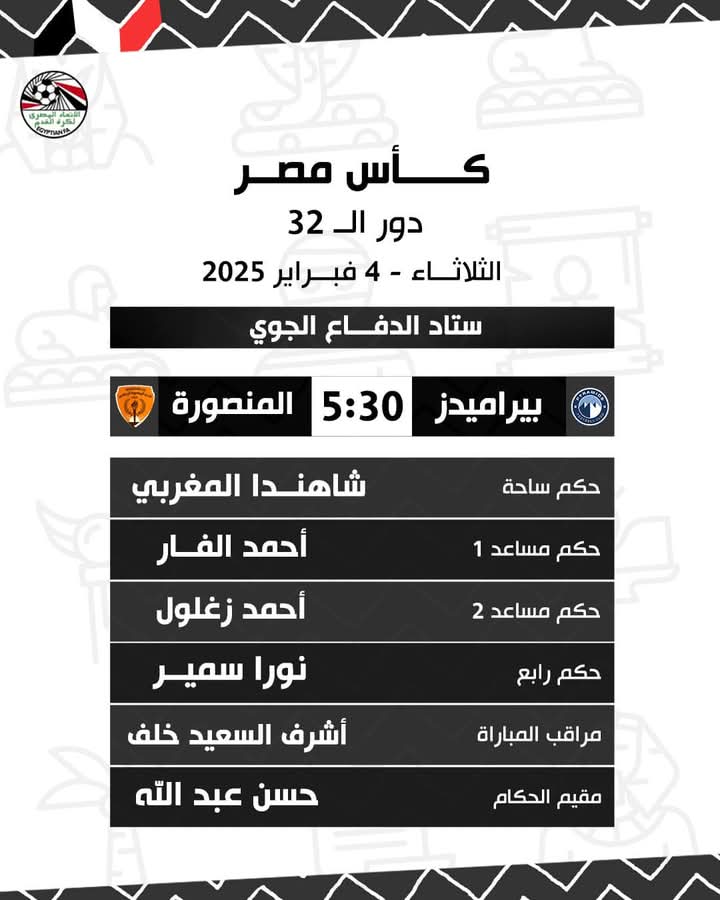 ويحل المنصورة ضيفًا على بيراميدز في الخامسة والنصف من مساء الثلاثاء على إستاد الدفاع الجوي في إطار مباريات دور الـ٣٢ من بطولة كأس مصر.