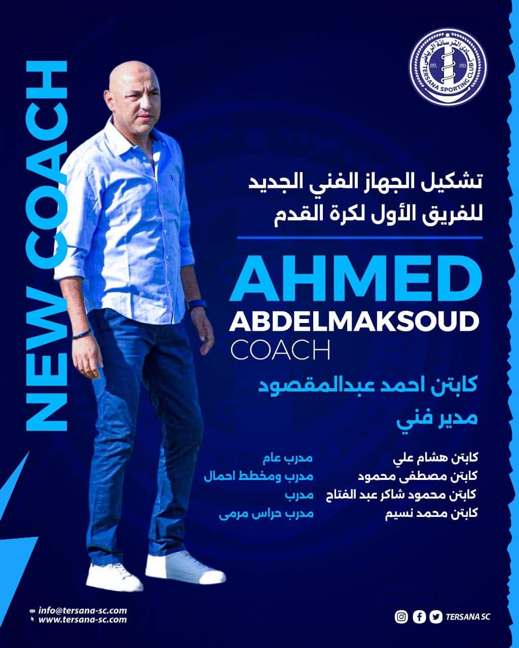 وجاء تشكيل الجهاز الفني الجديد لنادي الترسانة مكون من: