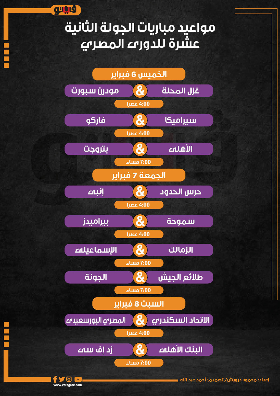 مواعيد مباريات الجولة الثانية عشرة للدورى المصري (انفوجراف)