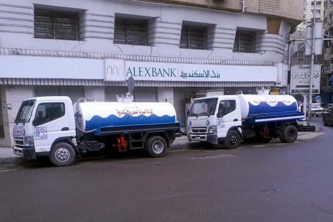 انتشار سيارات الصرف الصحى فى شوارع وميادين الإسكندرية لكسح تجمعات مياه الأمطار