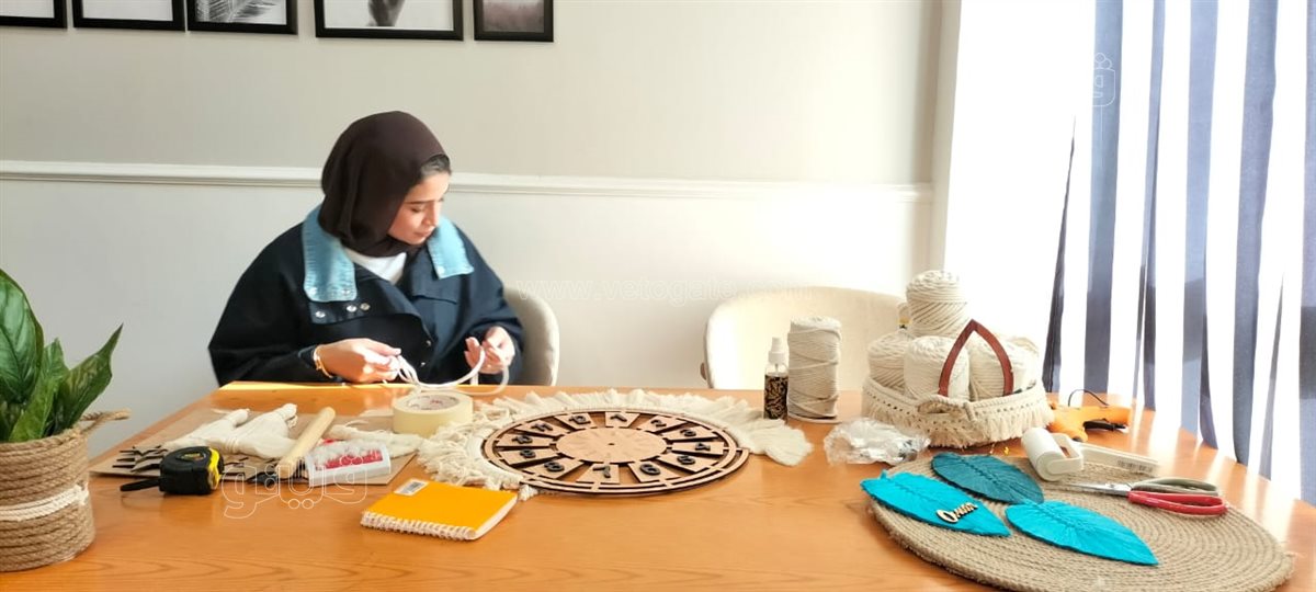 ورصدت عدسة فيتو احدى الفتيات العاملات في مجال فن المكرمية.