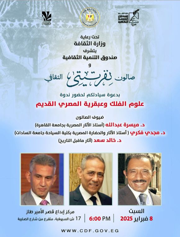 وتحمل الأمسية عنوان "علوم الفلك وعبقرية المصري القديم"، لتسليط الضوء على تقدم المصريون منذ فجر التاريخ في قراءة صفحة السماء ومعرفة مواقع النجوم وحركة الكواكب، وكيف نجحوا كمجتمع زراعي في تأسيس تقويم متوافق مع دوران القمر، وربطوا بينه وبين الديانة المصرية القديمة ومختلف العلوم مثل الهندسة والبناء، والذي تجسد في ظاهرة تعامد الشمس في توقيت محدد كما يحدث كل عام داخل معبد أبو سمبل وسبعة معابد أخرى، وهو ما يفسر كيف سجلوا تفاصيل السماء والكواكب والأبراج وتقسيم اليوم إلى ساعات على سقف معبد "دندرة".