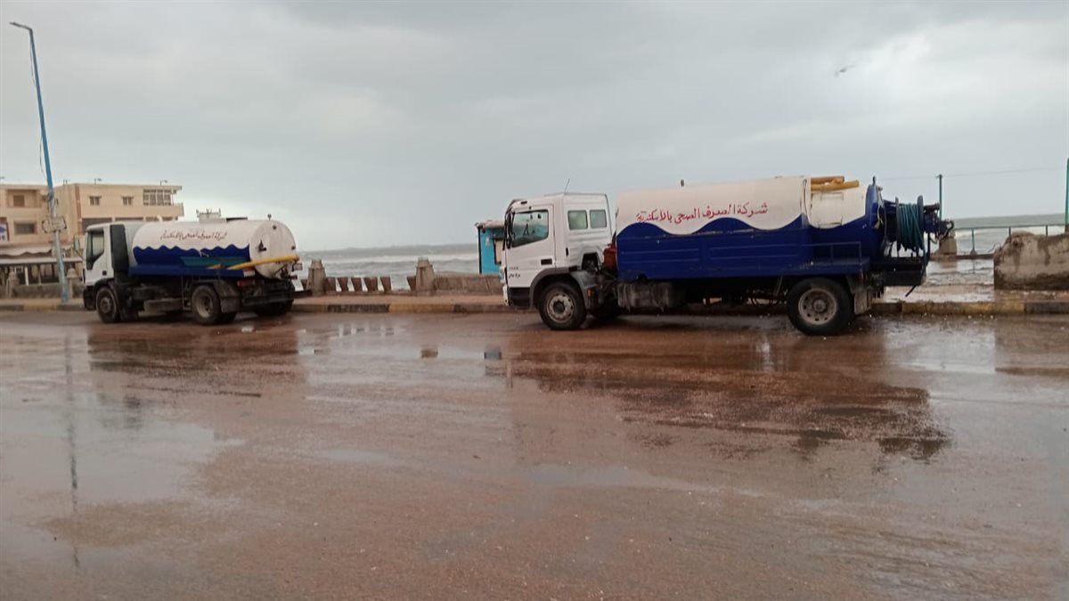 وانتشرت سيارات الصرف الصحي بالتعاون والتنسيق مع أحياء المحافظة، ورفع حالة الطوارئ القصوى والاستعدادات فى كافة الميادين لرفع أي تراكمات للأمطار.