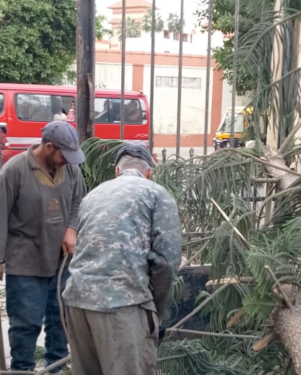 وكان الأجهزة التنفيذية بحى وسط قد تلقت بلاغا يفيد بسقوط شجرة بالطريق العام وذلك بسبب سوء الأحوال الجوية التى تتعرض لها المحافظة منذ أمس، ووجه الدكتور مصطفى العرابي رئيس الحي إدارة الحدائق برفع شجرة سقطت بفعل الرياح الشديدة، أمام مكتب صحة الحضرة القبلية، حيث تم التقطيع والرفع بمعرفة فرقة الأشجار بالحي.