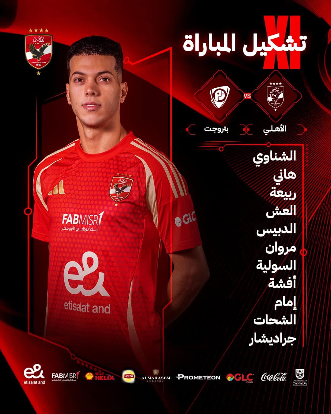 وجاء تشكيل الأهلي لمواجهة بتروجيت كالتالي: