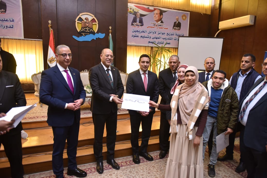تسليم عقود عمل لذوي الهمم وجوائز وشهادات لخريجي مراكز التدريب المهني بالفيوم