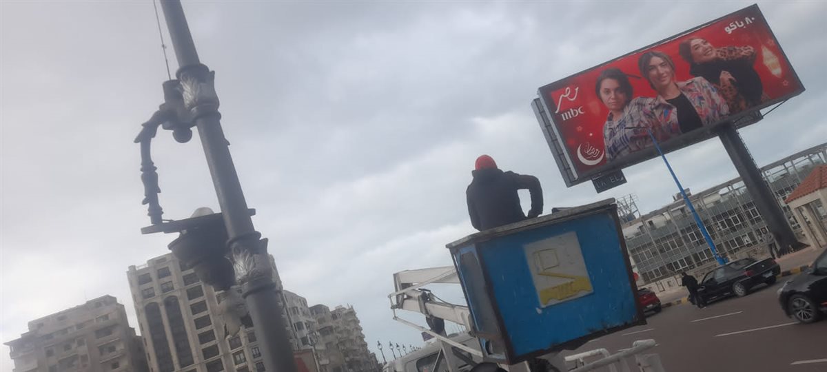 كما تلقى الحي بلاغا آخر يفيد بسقوط لافتة استاند إعلاني بجوار ساعة الزهور منطقة باب شرق، وتم التواصل مع الوكالة الإعلانية ورفع الإعلان.