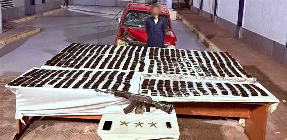 كما تم ضبط أحد الأشخاص "له معلومات جنائية" بدائرة قسم شرطة أبوزنيمة بجنوب سيناء وبحوزته (كمية لمخدر الحشيش وزنت 55 كيلو جرام – بندقية آلية وعدد من الطلقات).
