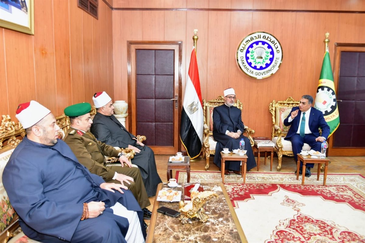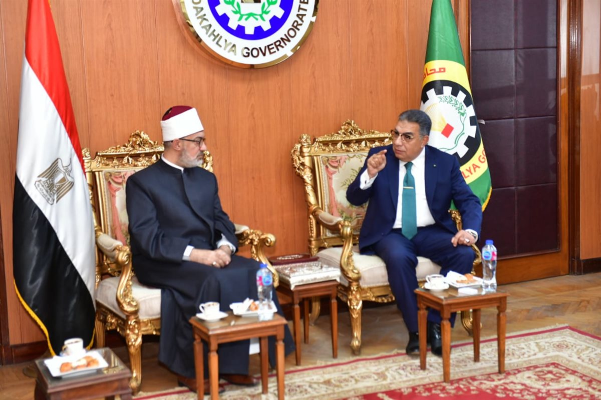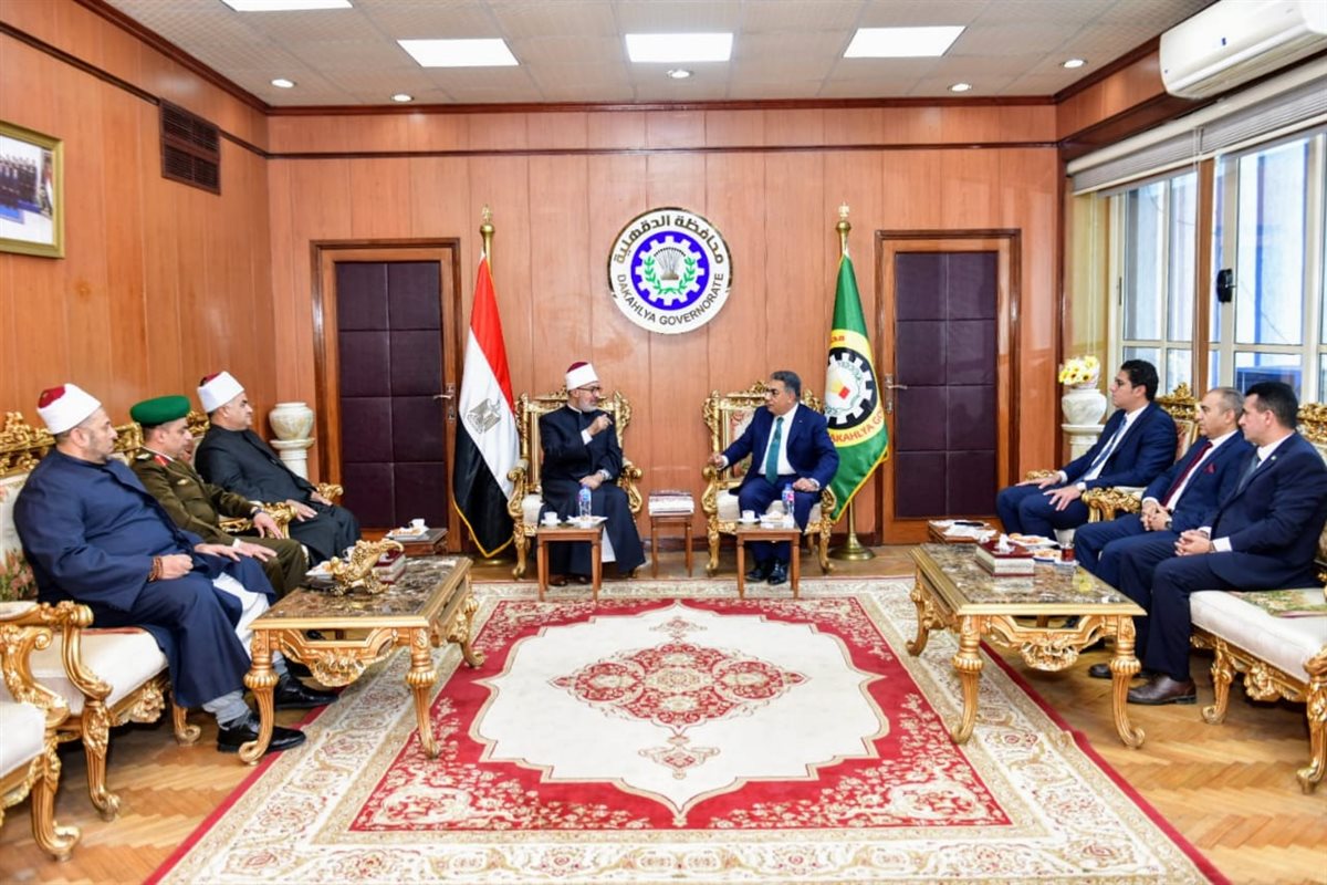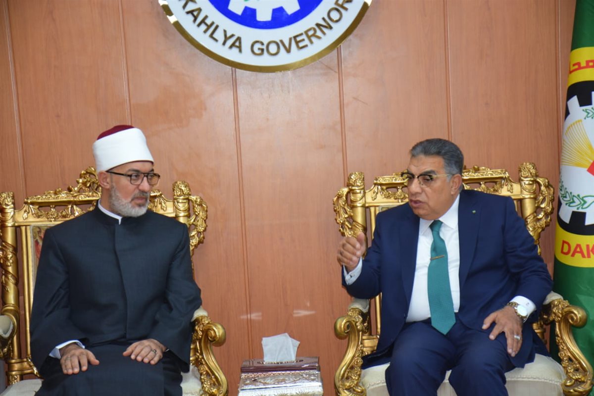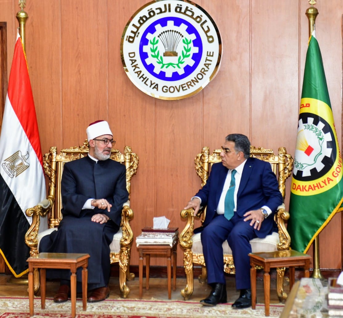 محافظ الدقهلية يستقبل مفتي الجمهورية للتهنئة بالعيد القومي وأداء صلاة الجمعة (صور)