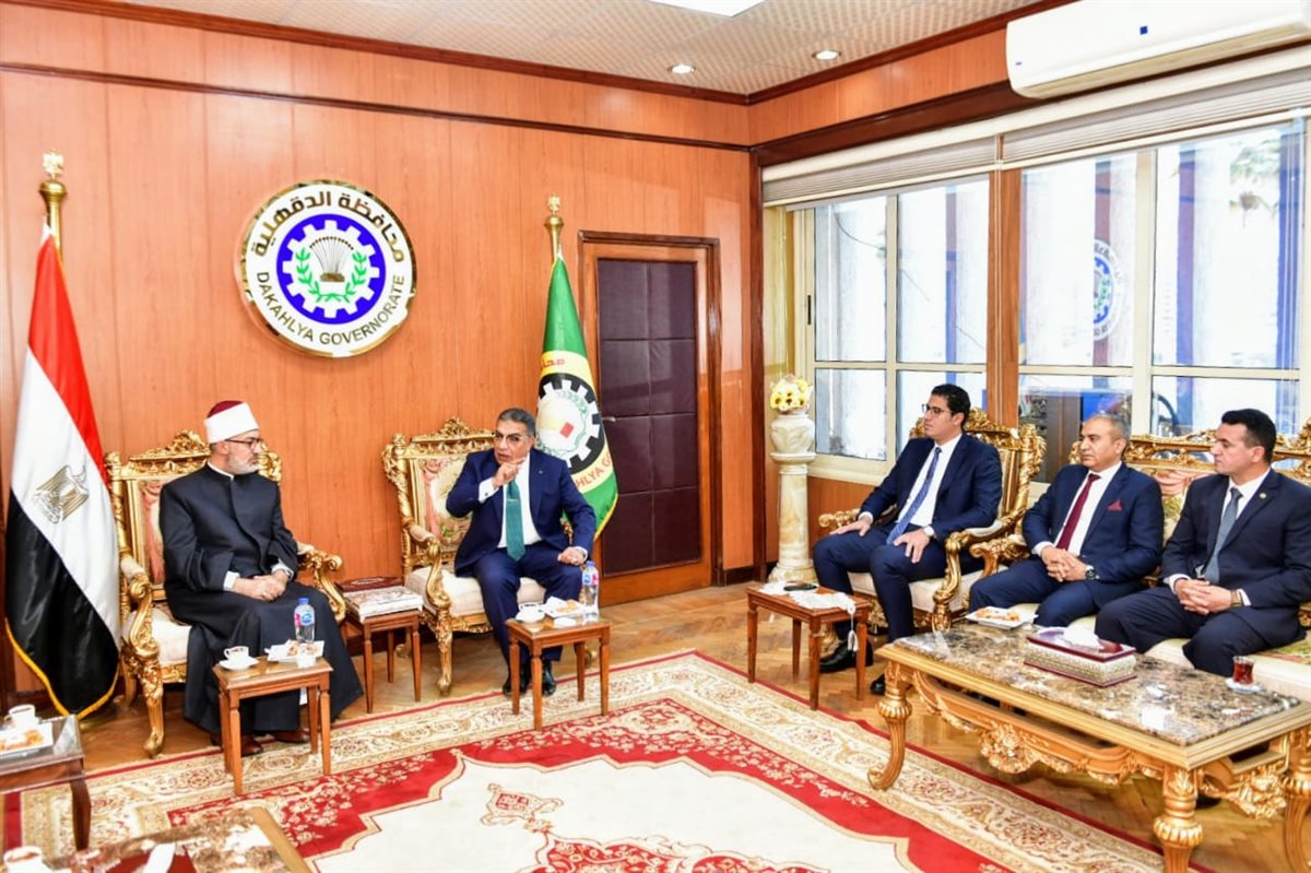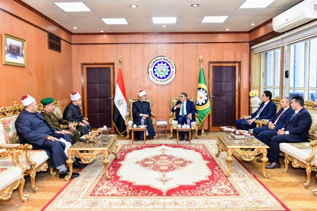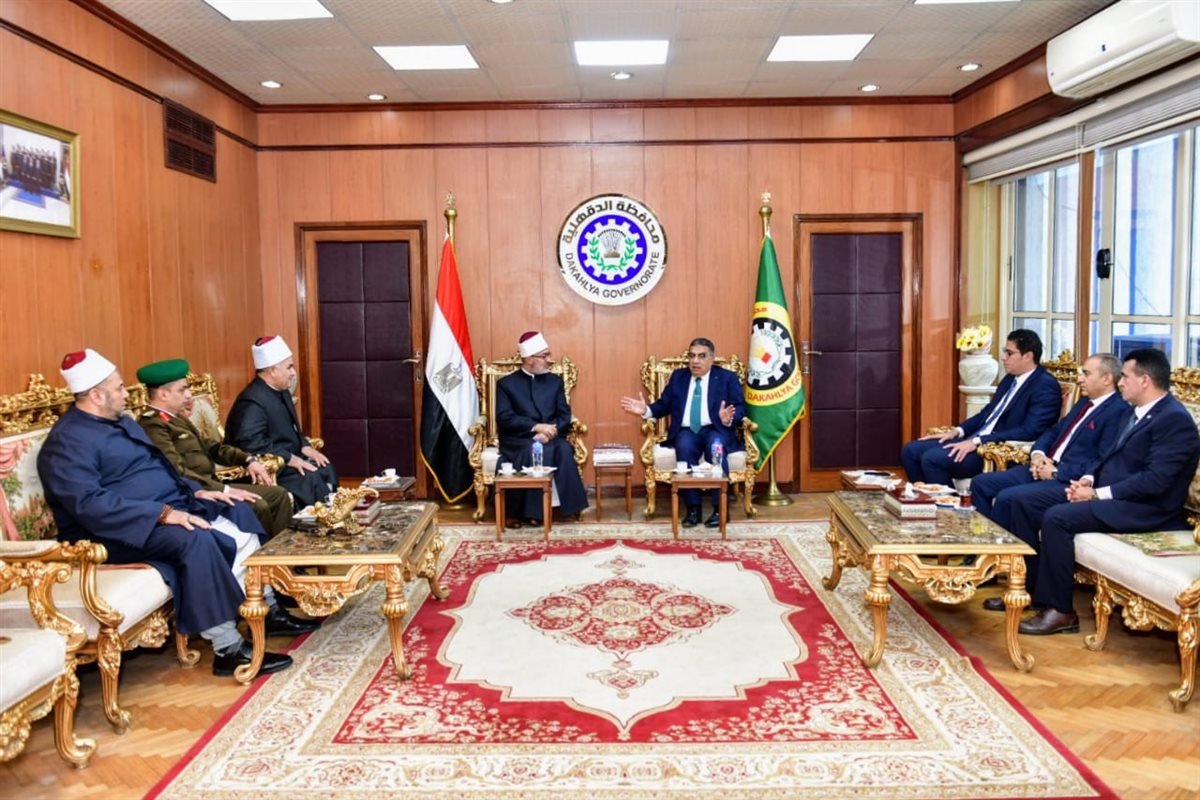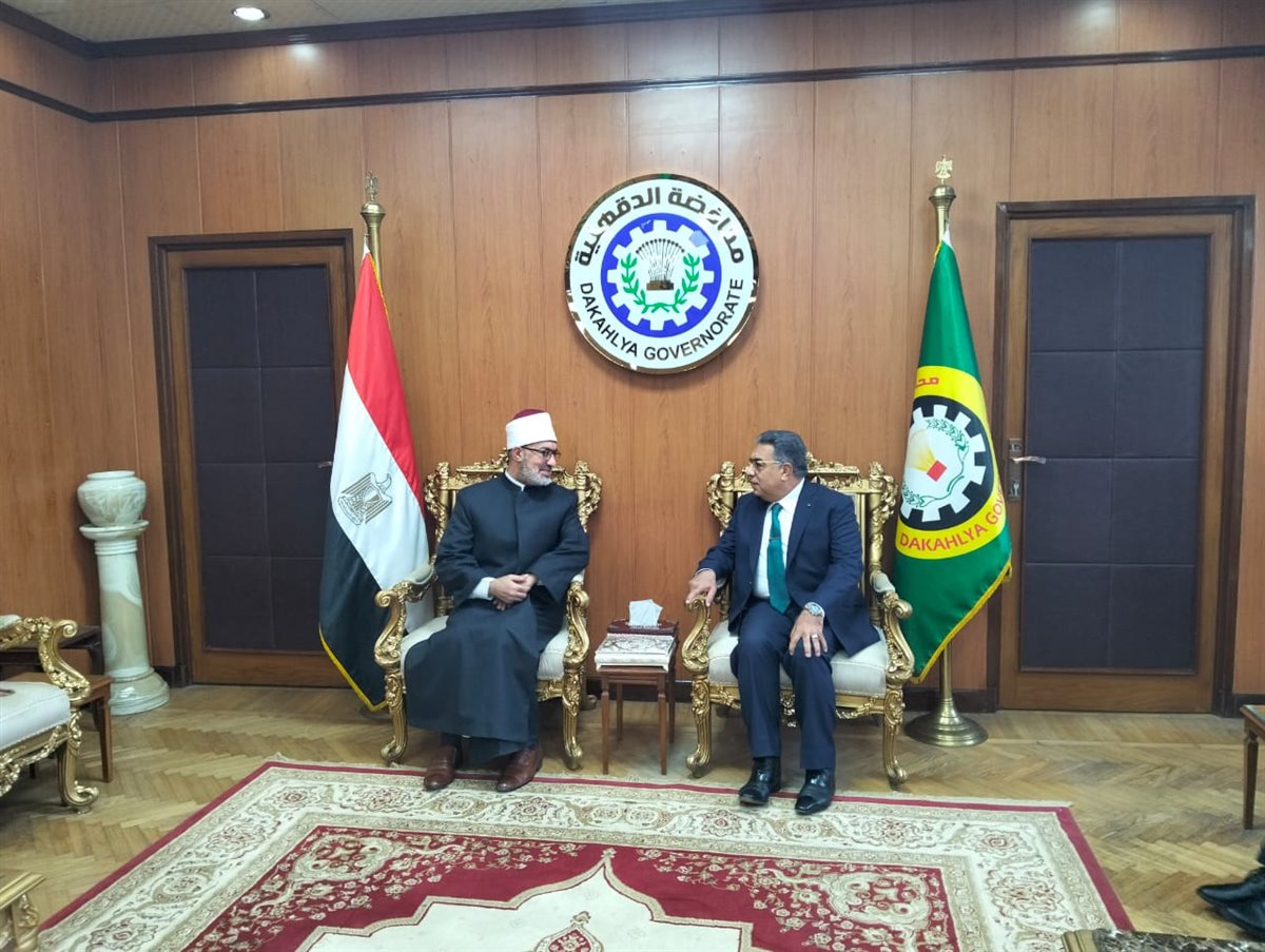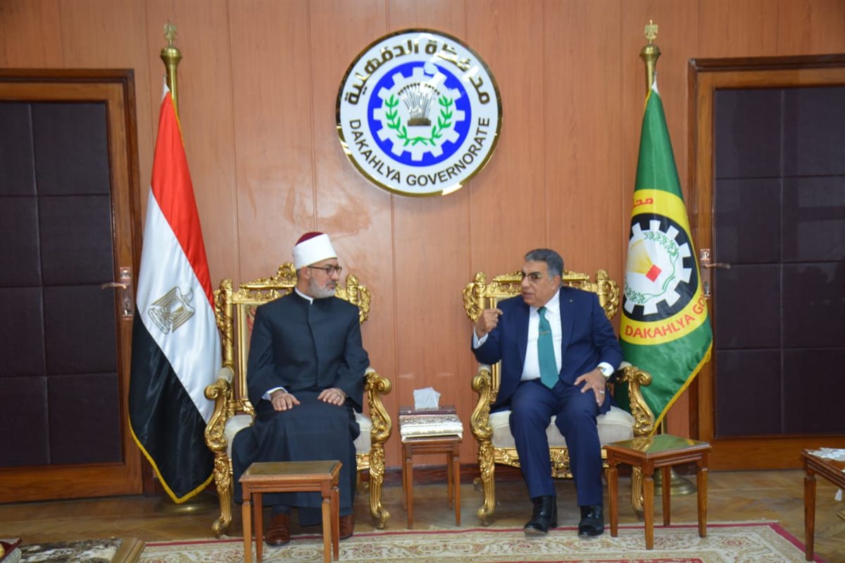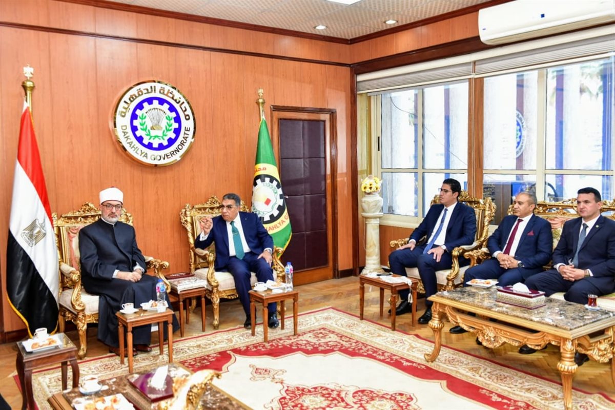 محافظ الدقهلية يستقبل مفتي الجمهورية للتهنئة بالعيد القومي وأداء صلاة الجمعة (صور)