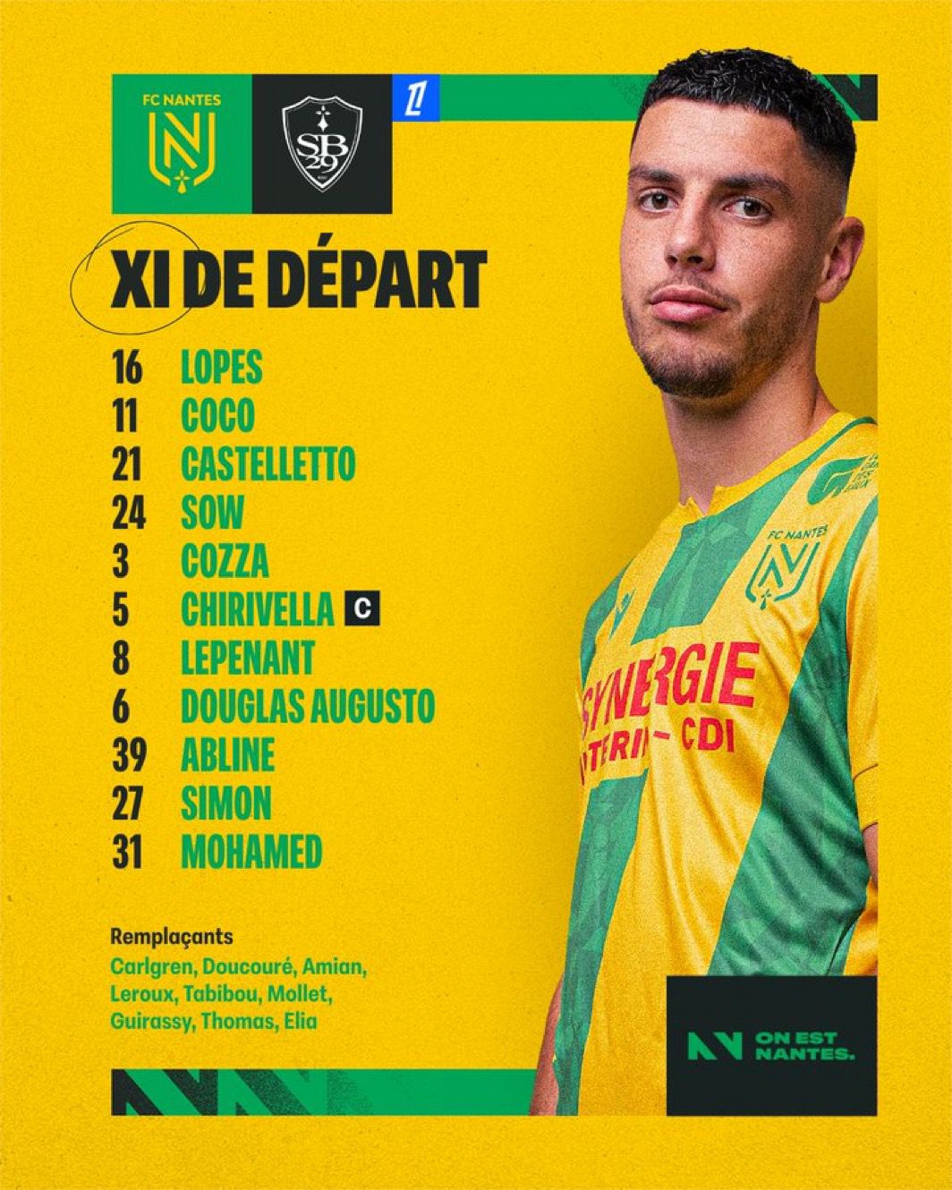 أعلن مدرب فريق نانت عن تشكيل فريقه أمام بريست، في المباراة المقرر أن تجمع بينهما، بعد قليل، في إطار منافسات الجولة الحادية والعشرين من بطولة الدوري الفرنسي.