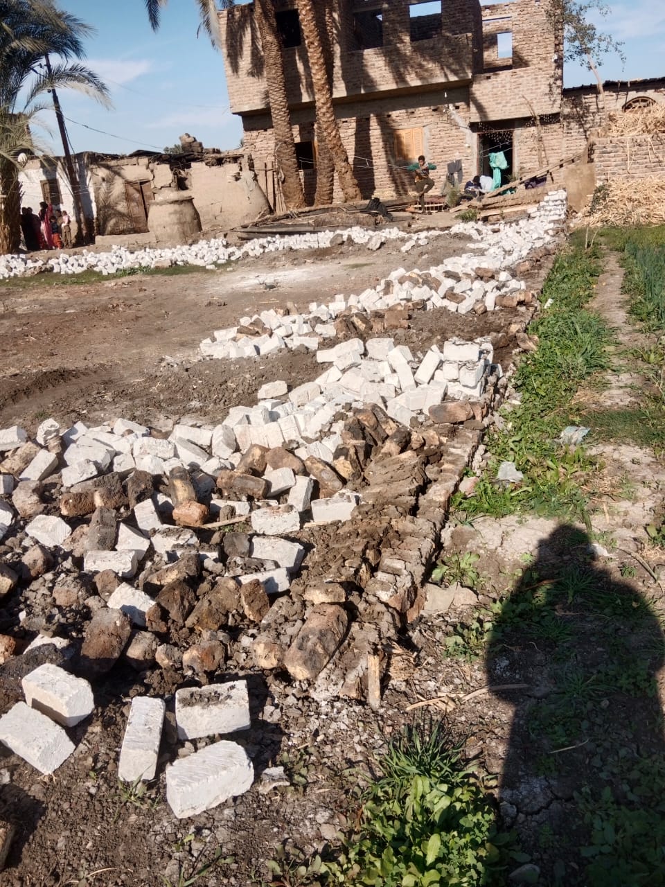 وكانت الحالة الأولى ردم حفر تربة زراعية قبل الشروع لعمل قواعد خرسانية على مساحة 175 مترا بقرية الرياينة بحوض 111 إصلاح زراعي، والحالات الثانية والثالثة والرابعة عبارة عن أسوار بالطوب الأبيض والأحمر ومونة الطين على مساحة 700 متر بأرمنت الحيط، أما الحالة الخامسة عبارة عن فك شدة خشبية دور ثانى على مساحة 125 مترا بقرية السلام.