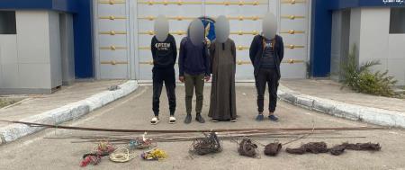 كما ضبط (3 عاطلين) بدائرة قسم شرطة القطامية بتهمة ممارسة نشاط إجرامى تخصص فى سرقة الأسياخ الحديد وكابلات الكهرباء وصهرها وإستخلاص النحاس منها بأسلوب "قص الأسياخ" واعترفوا بارتكابهم 4 وقائع سرقة بذات الأسلوب، وتم بإرشادهم ضبط كمية من الأسياخ الحديد والكابلات الكهربائية المستولى عليها لدى عميلهم سيئ النية (عاطل – مقيم بمحافظة المنيا).