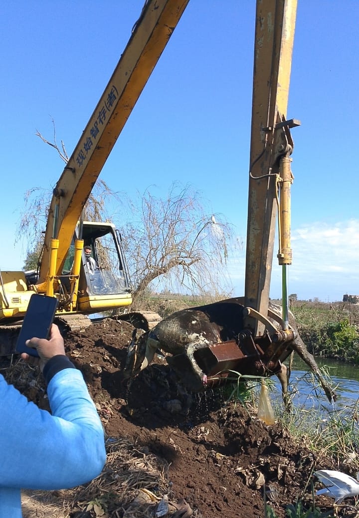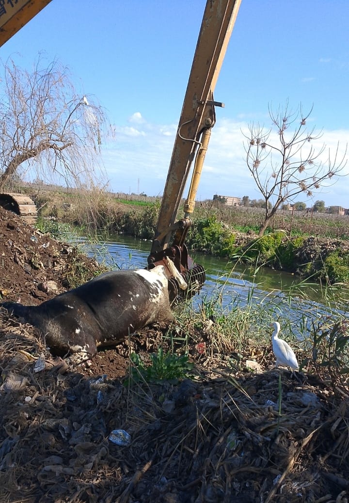 رفع حيوانات نافقة من ترعة ميت ميمون بالغربية (صور)